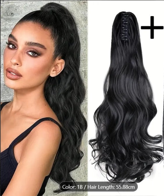 55.88 cm Heat Resistant Synthetic Hair Clip-In Ponytail Extensions - Straight & Curly Wave Blonde Ponytails for Women, Easy to Wear for Daily Use, Parties, Cosplay & Music Festivals, Ponytail Hair Clip, Party Hairpiece, Festival Goers.