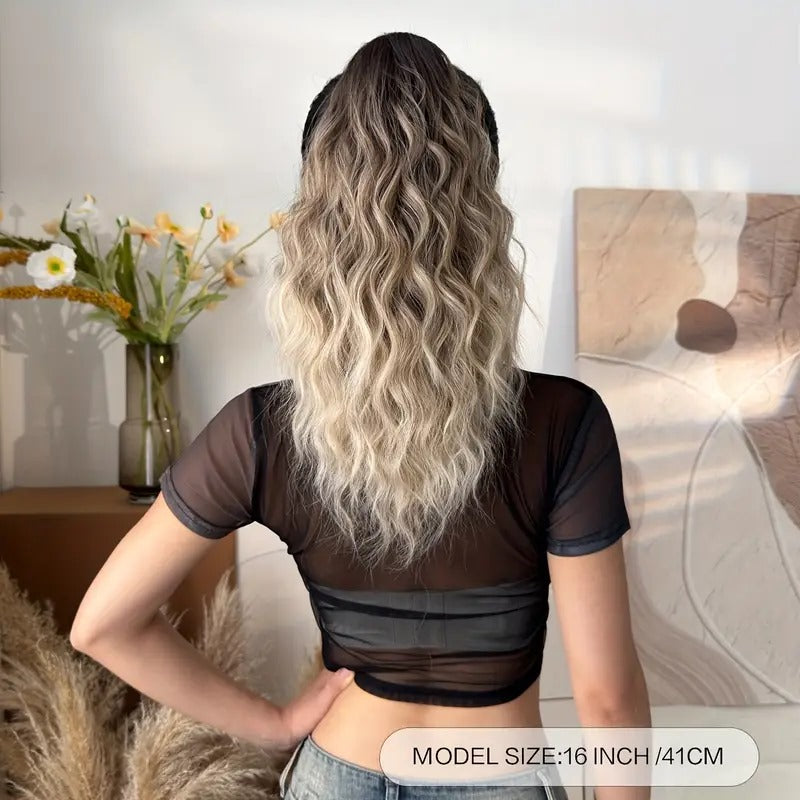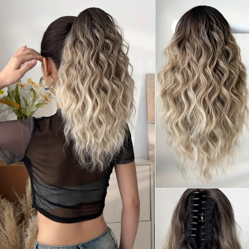 Short Ponytail Extensions Hair with Claw Water Wave 40.64 cm Ombre Heat Resistant Fiber Synthetic Hairpiece for Women Girls Party Daily Use.