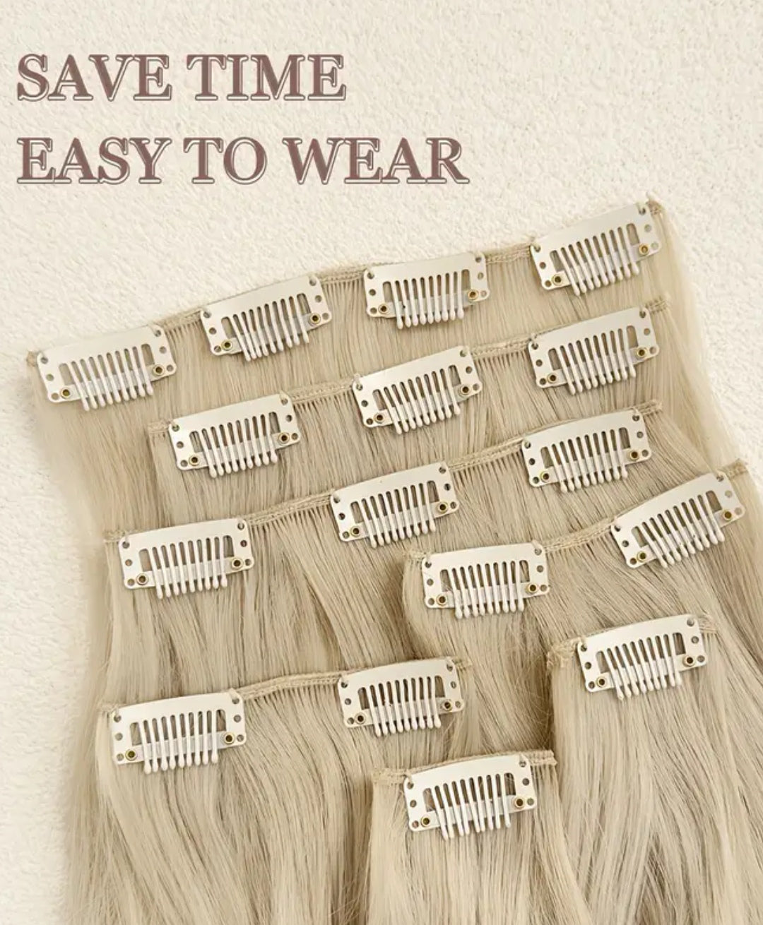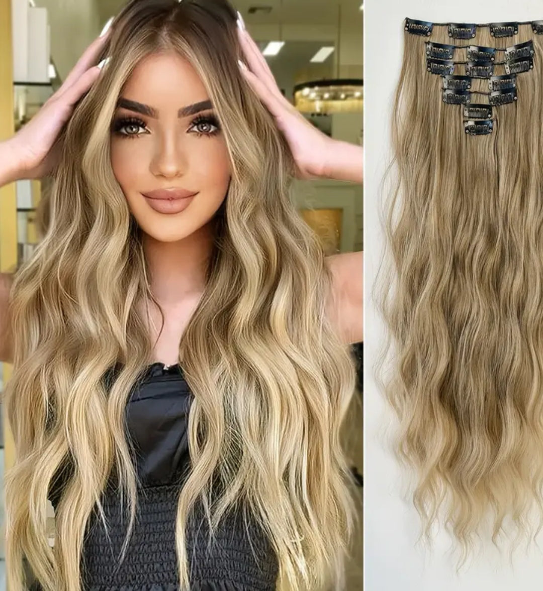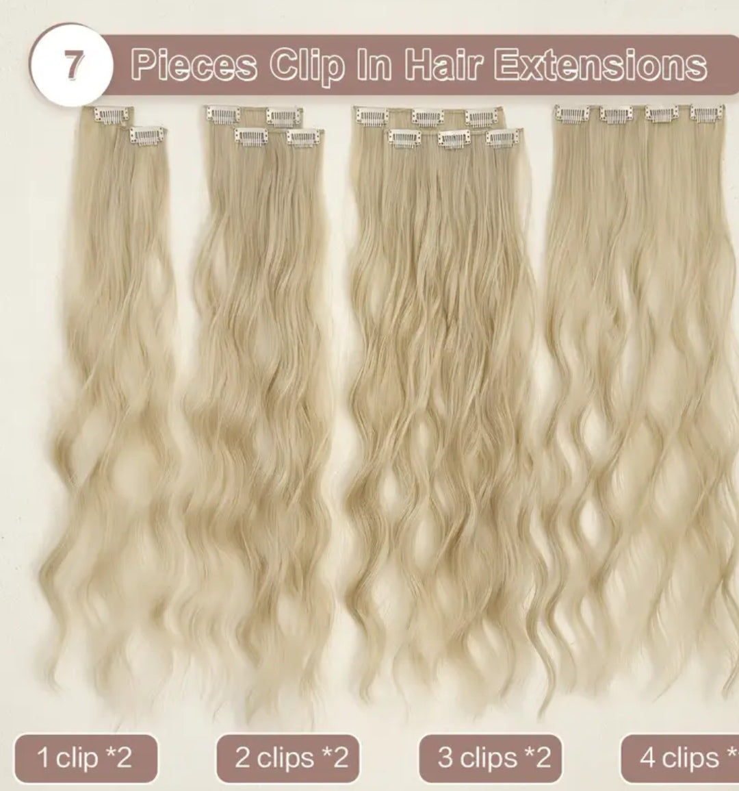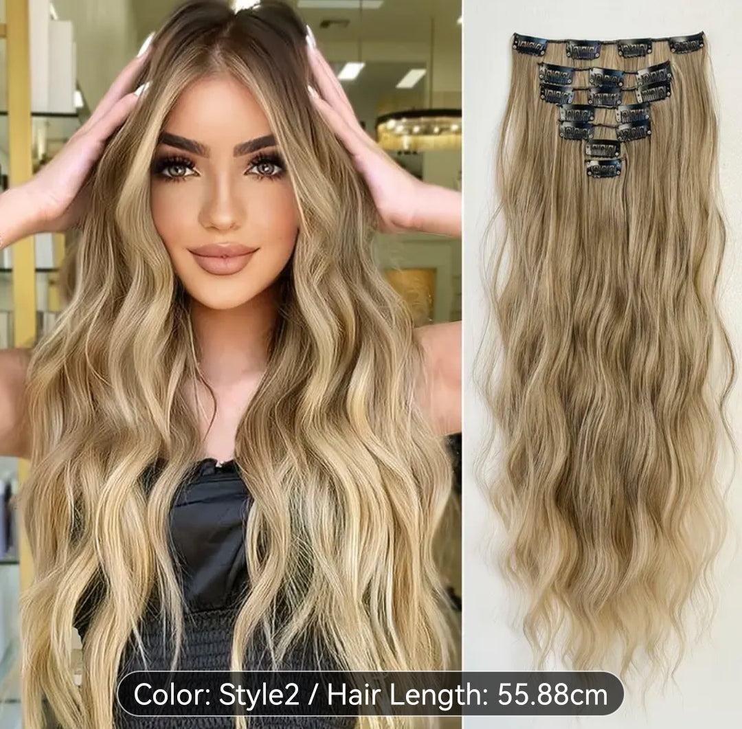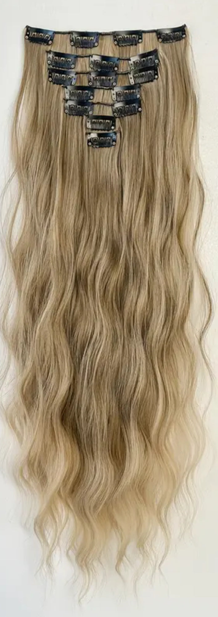 Clip in Hair Extension 55.88 cm Long Blond Water Wave Shaped Heat-Resistant Fiber Synthetic Hair Patch, Suitable for Women'S Short Hair, Dating, Daily Use.
