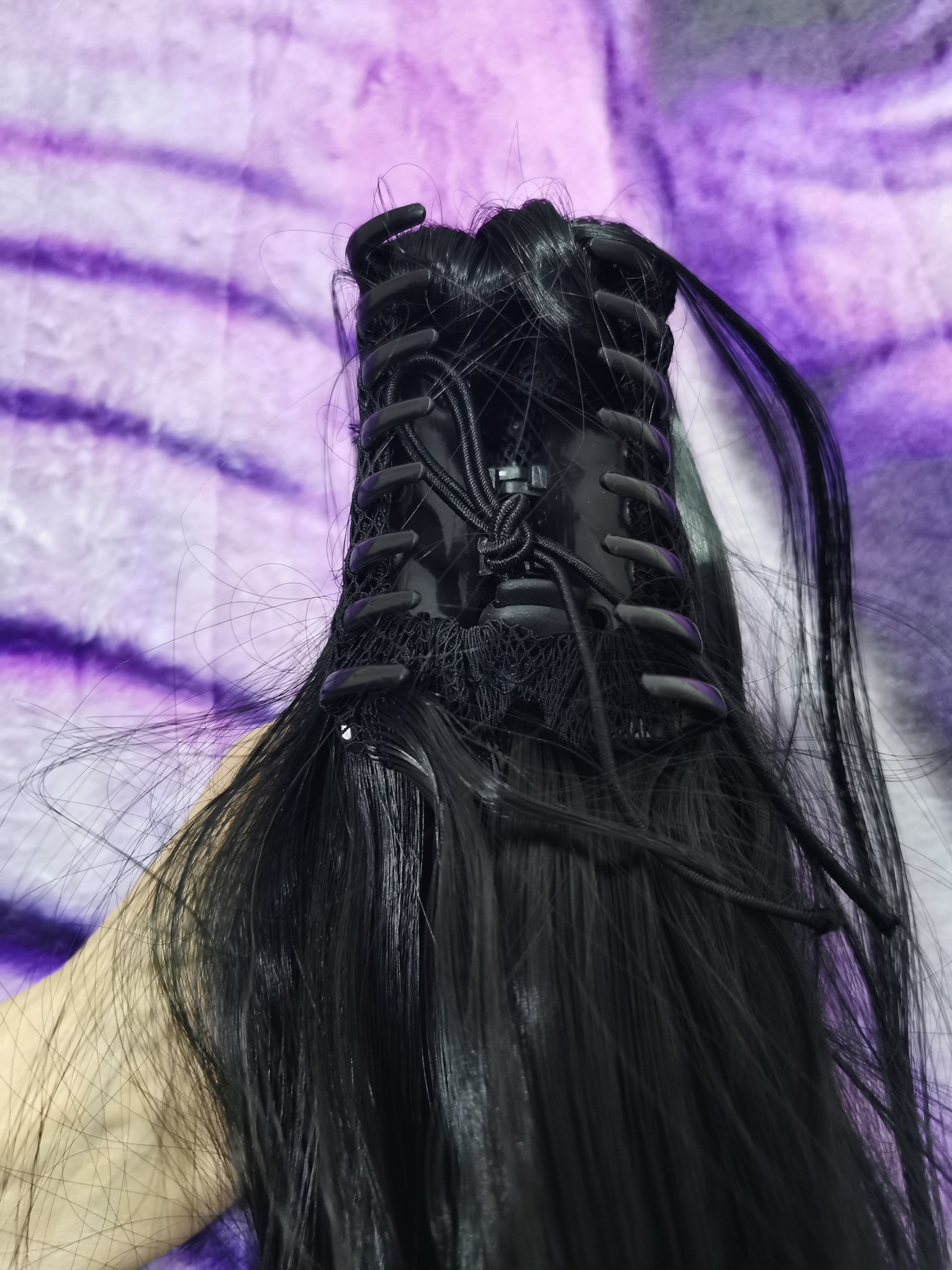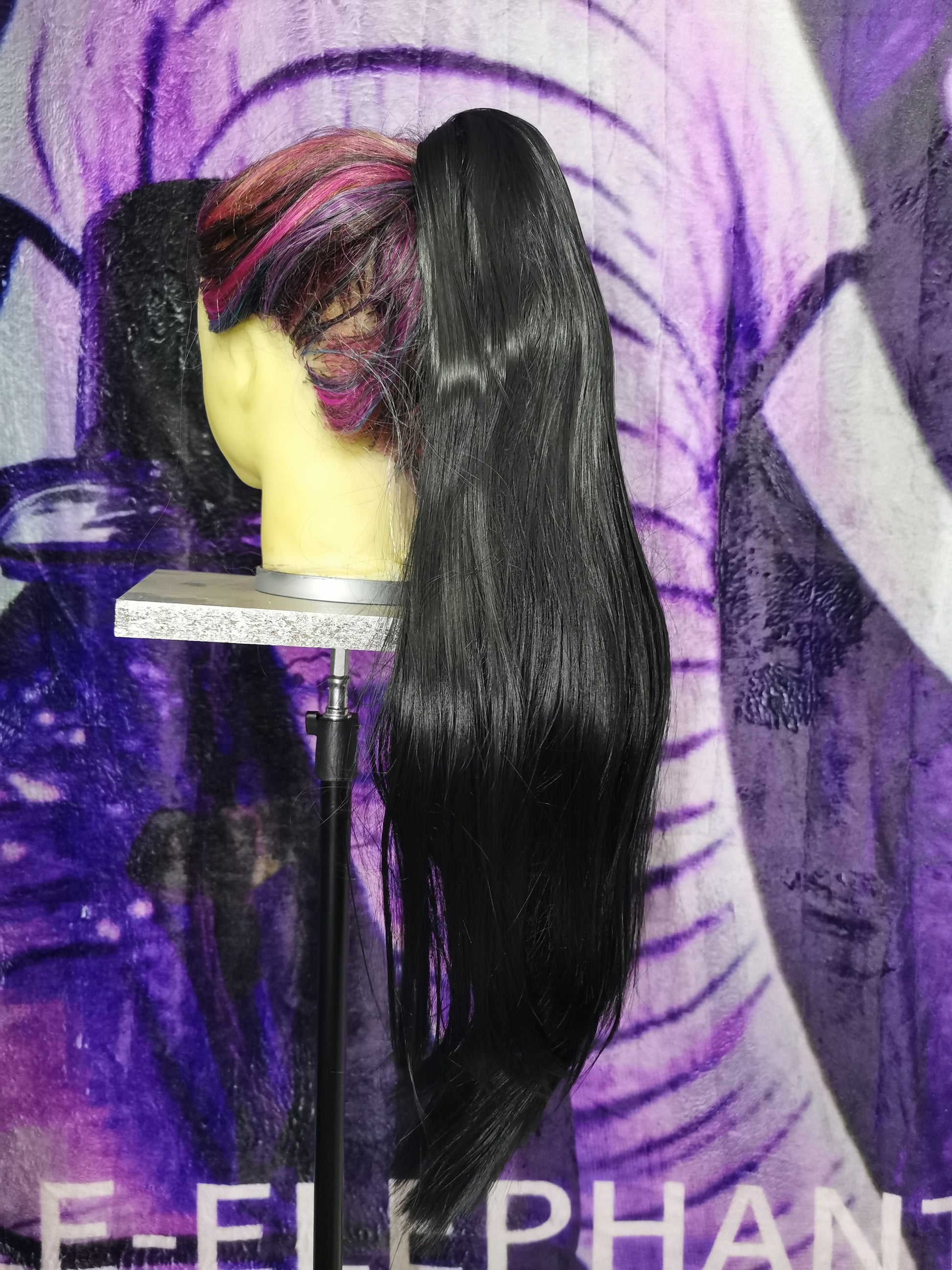 Women'S Straight Synthetic Ponytail Extension - Black Hairpiece with Claw Clip, Heat-Resistant Synthetic Fiber for Parties, Everyday, Photoshoots - Natural Look & Easy Clip-In Attachment, Party Hairpiece, Photoshoot Hairpiece.