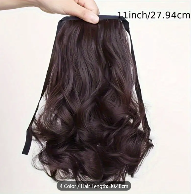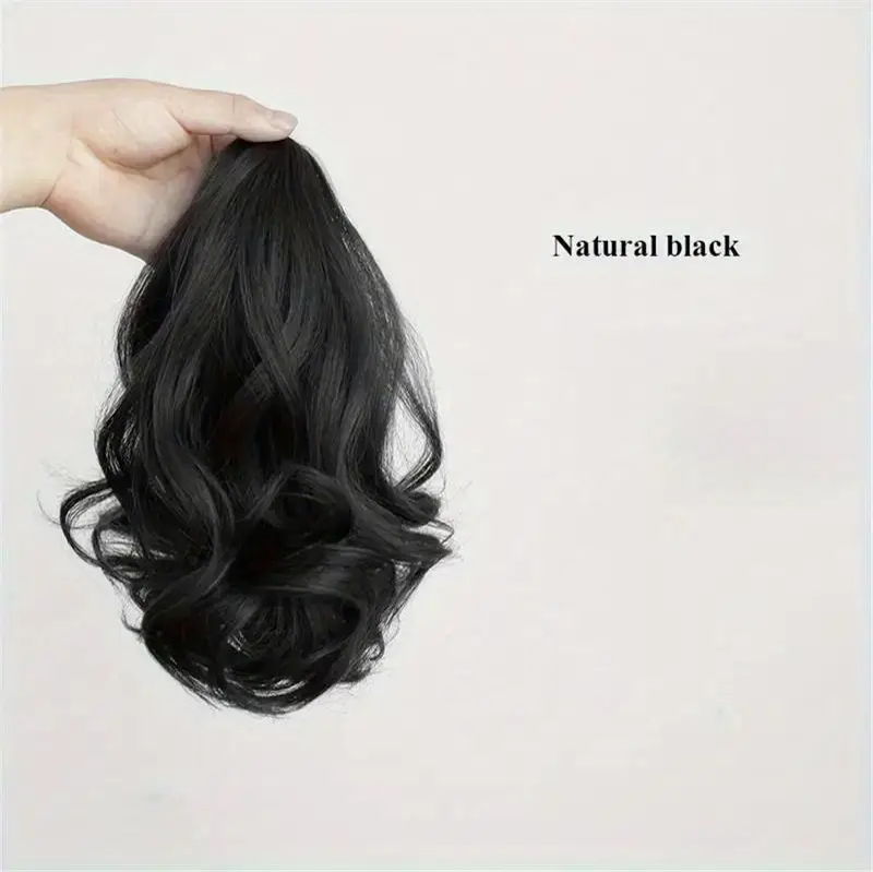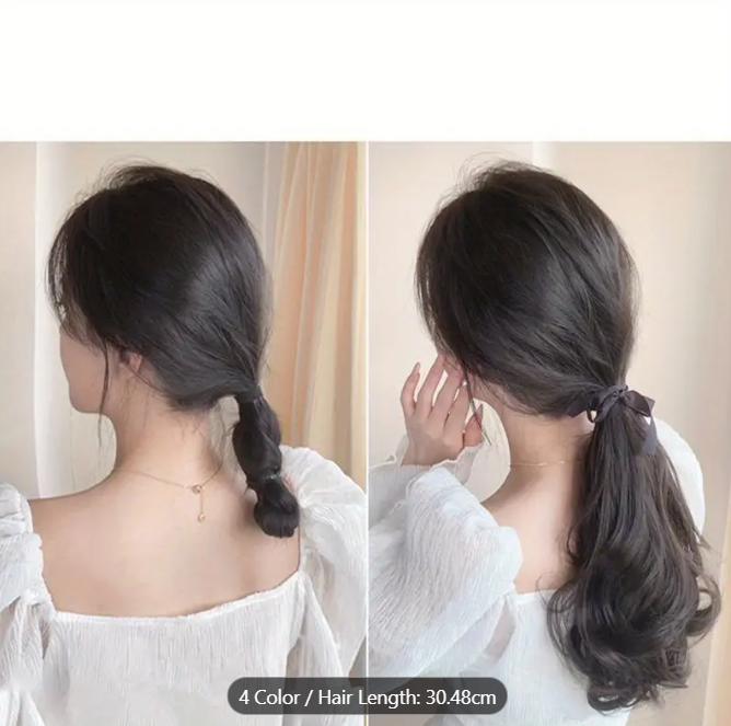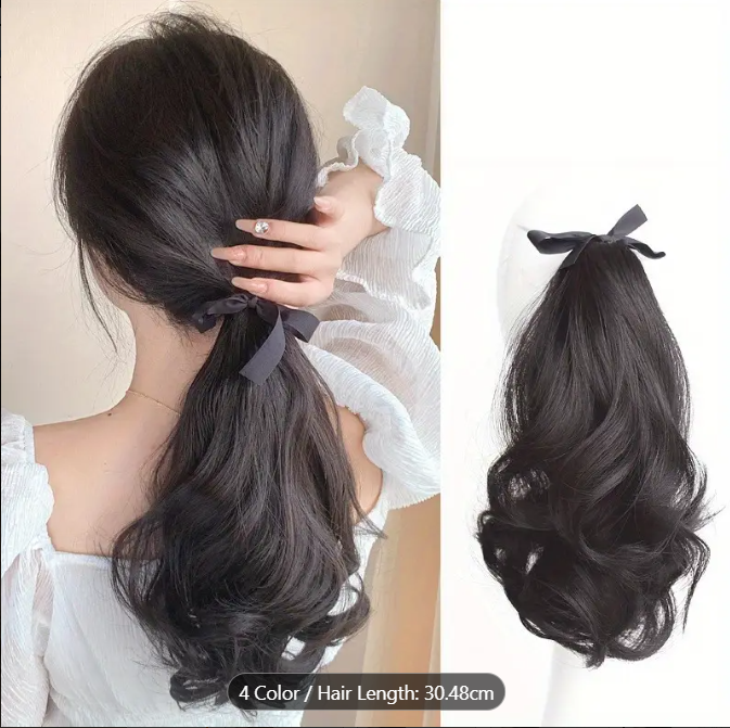 11-Inch Elegant Ponytail Wig with Black Bow - Soft Curly Wave & Sleek Straight Styles, Natural-Looking Black Hair for Everyday & Special Occasions, Versatile Hairpiece, Hairpiece, Secure Fit Hairpiece