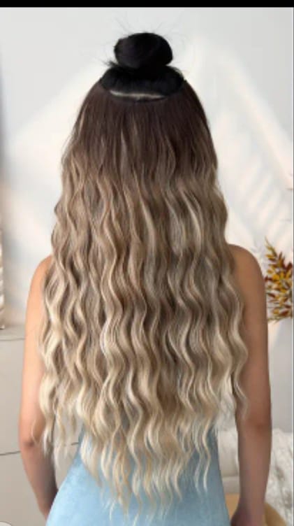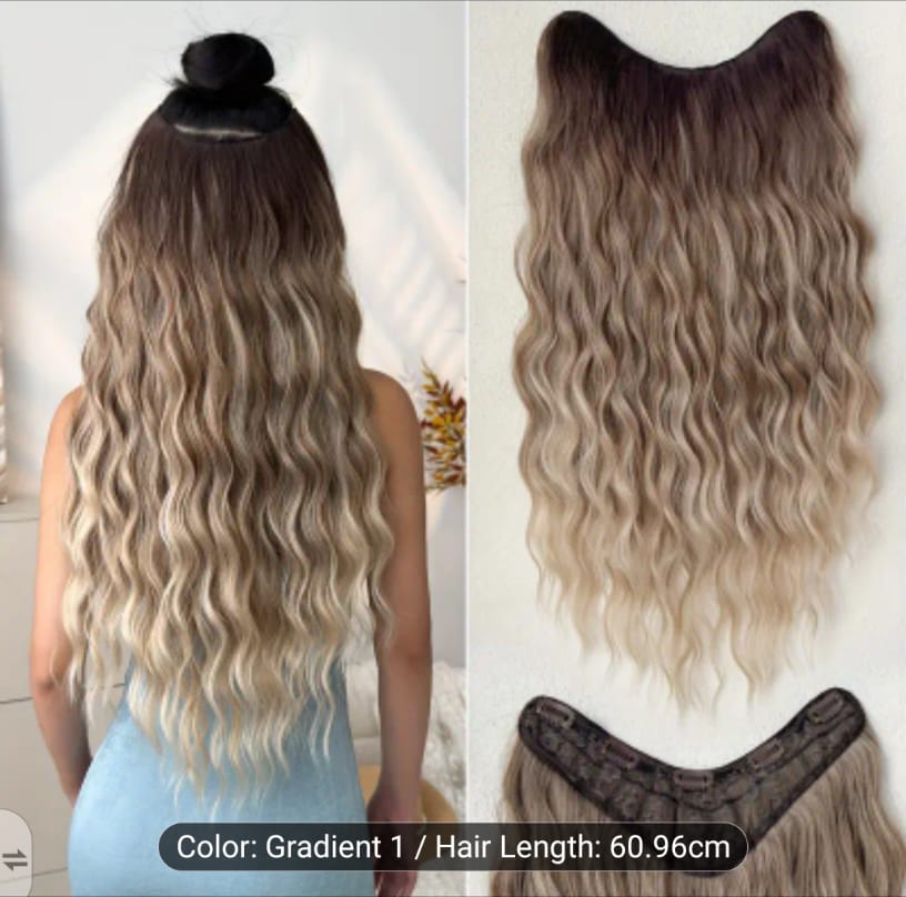 60.96cm / Gradient 1 V-Shaped Clip-In Hair Extensions - Heat Resistant Synthetic Hairpiece with Looking Water Waves, Long 24-Inch Ombre Ponytails/Buns, for Women & Girls ( Parties, Everyday, Photo Shoots) - Available in Black, Brown, Blonde, Red, Burgundy), Hair Styling.