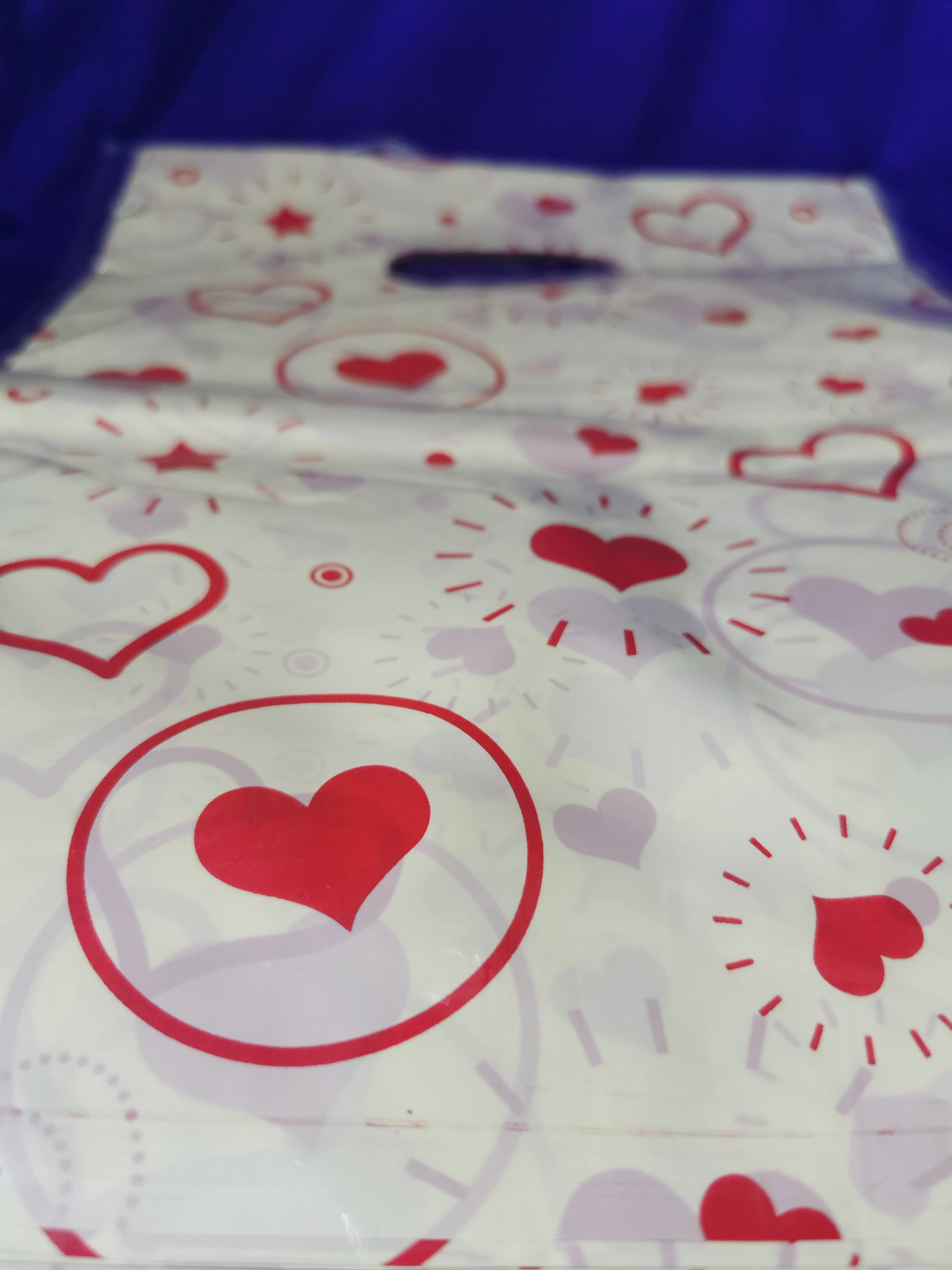 Cream with Red hearts 25 x 35 Merchandise Bags, Bulk Quantity, Gift Party Bags, Eco-Friendly Material 50pc.