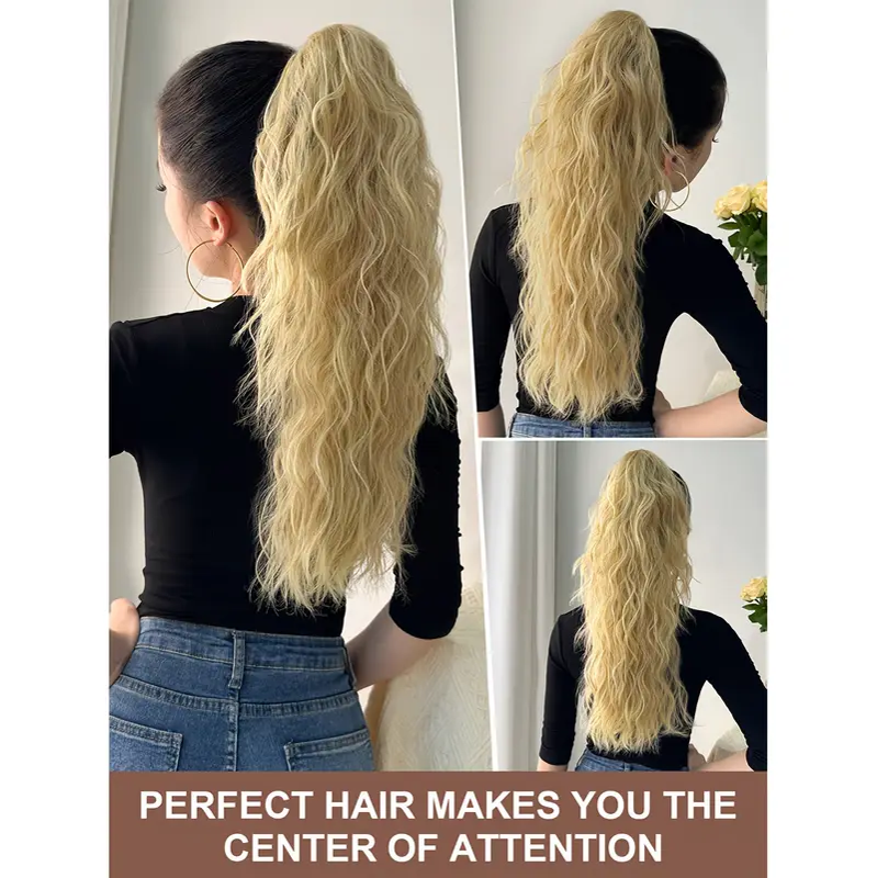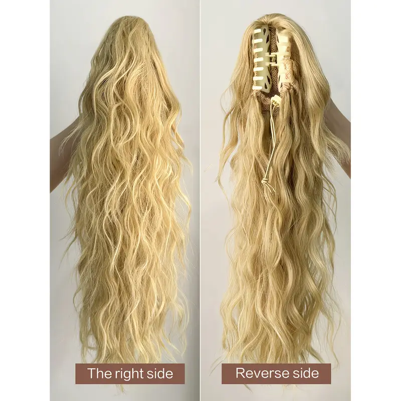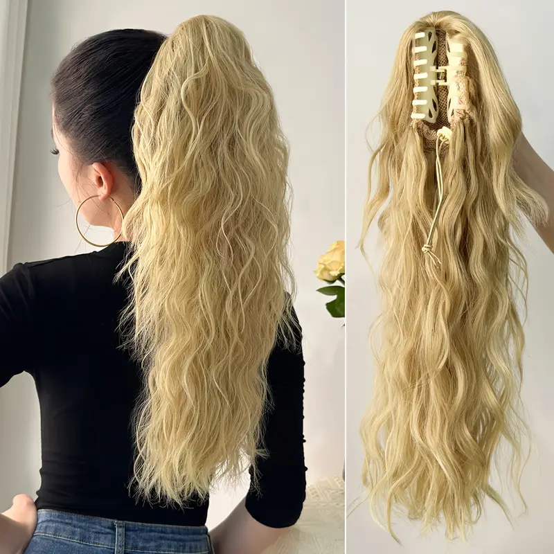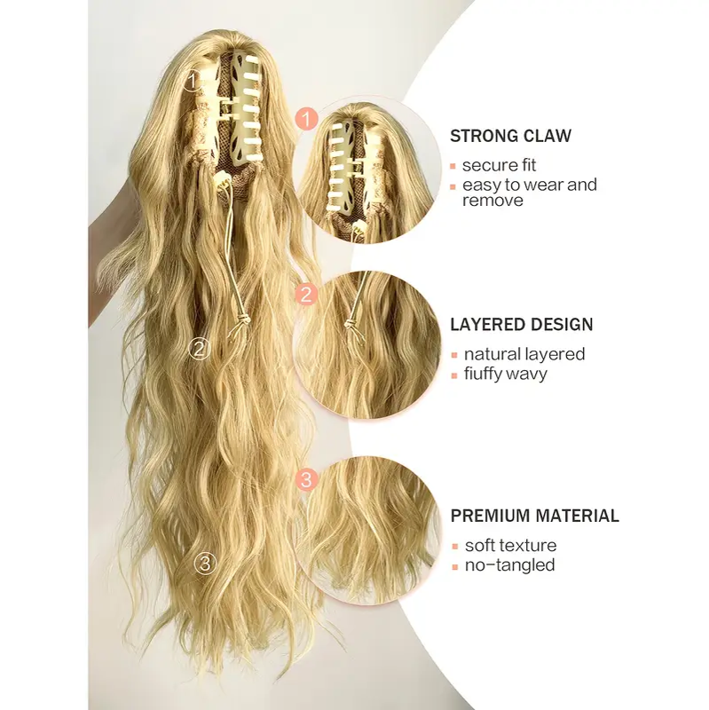 50.8cm / Golden Blond - Women'S Long Ponytail Wig - Heat-Resistant Synthetic Hair Extension with Claw Clip, Blonde-like Blonde (Light Blonde to Dark Blonde) - Natural Look for Everyday, Parties, Photoshoots - Damage-Free Styling & Maintenance, Party Hairp