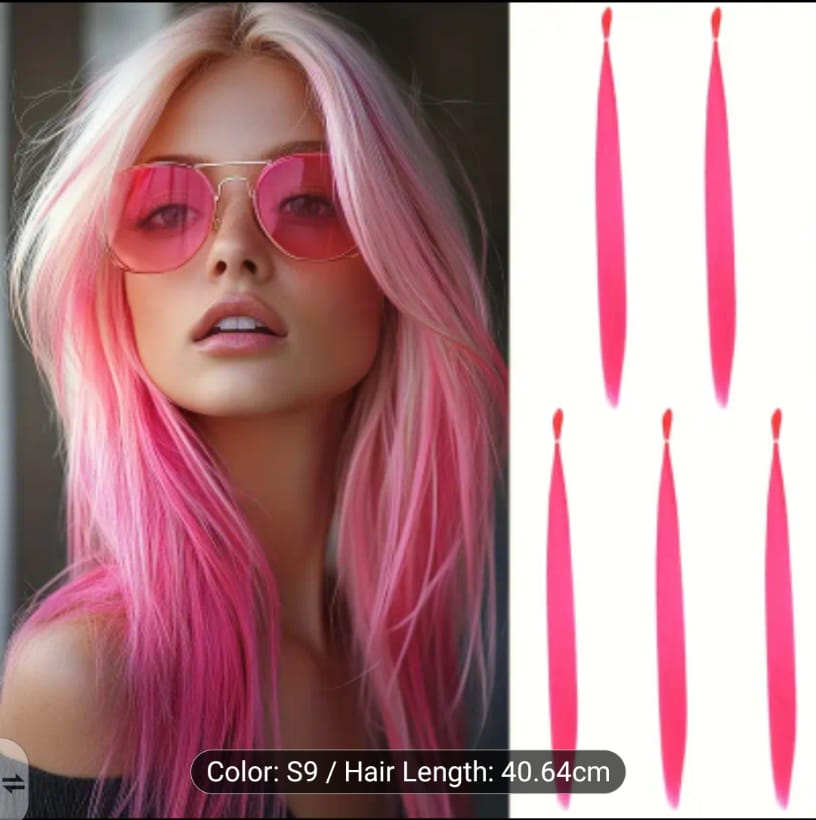 Light Pink - 10Strands 40.64 cm Party Color Hair Extensions Set I-Tip Fashion Long Straight Pieces Synthetic Heat Resistant Top Extensions Hair Accessories for Christmas and Daily Wear.