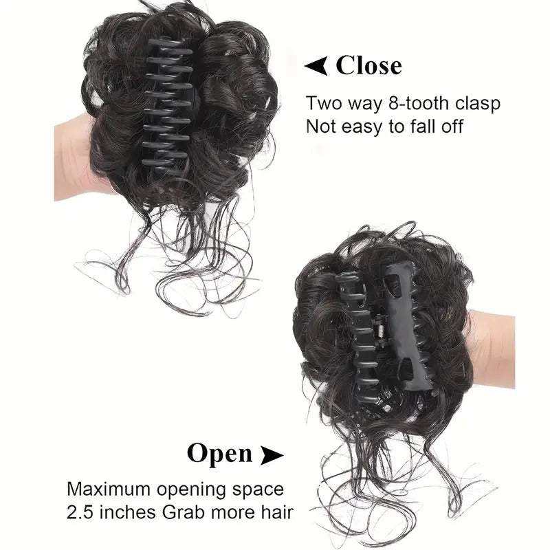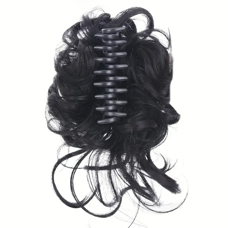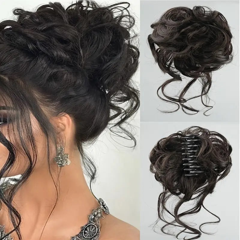 Chic Messy Curly Claw Clip Hair Bun - Versatile Synthetic Hairpiece for Women, Perfect for All Occasions.