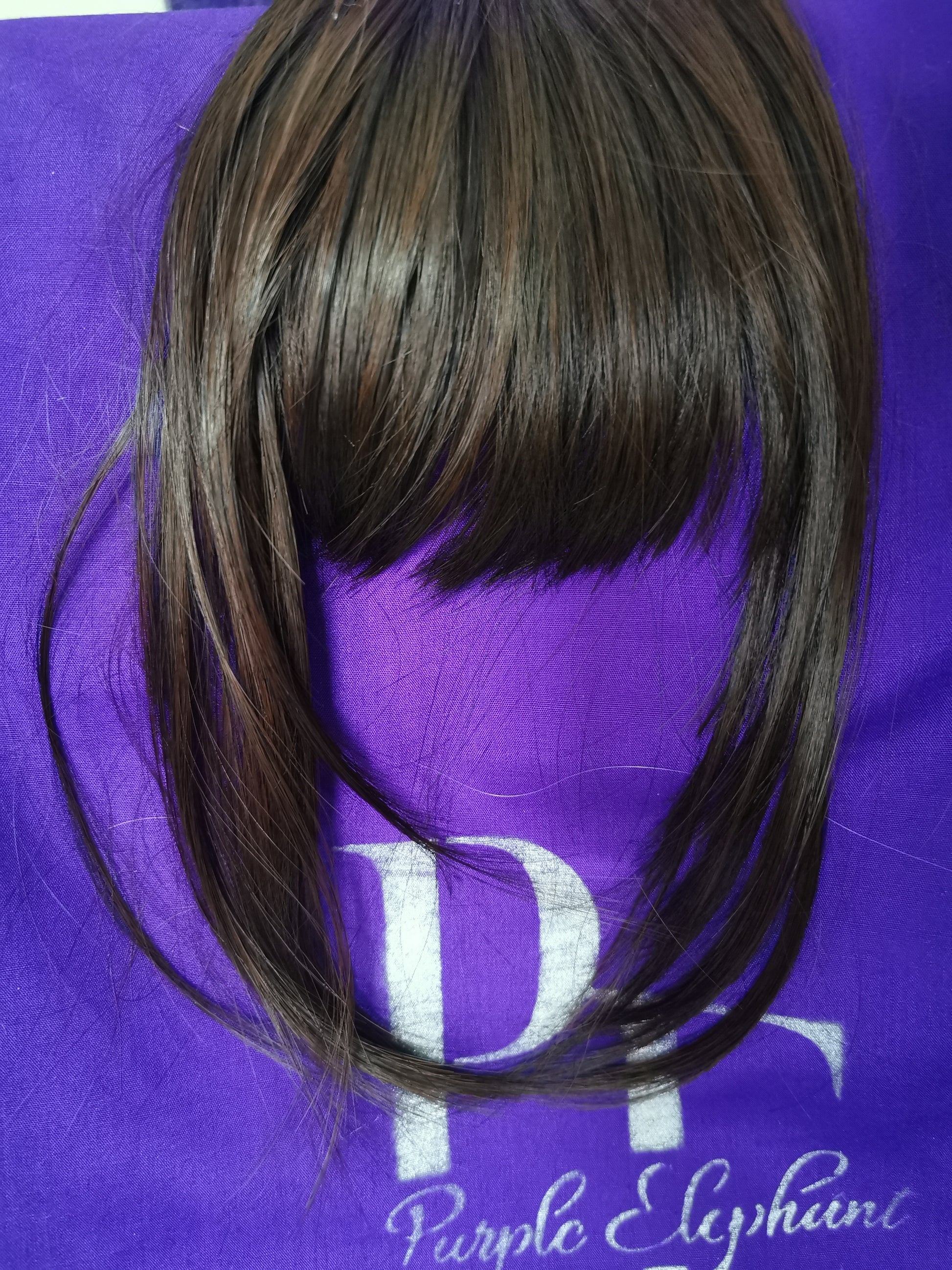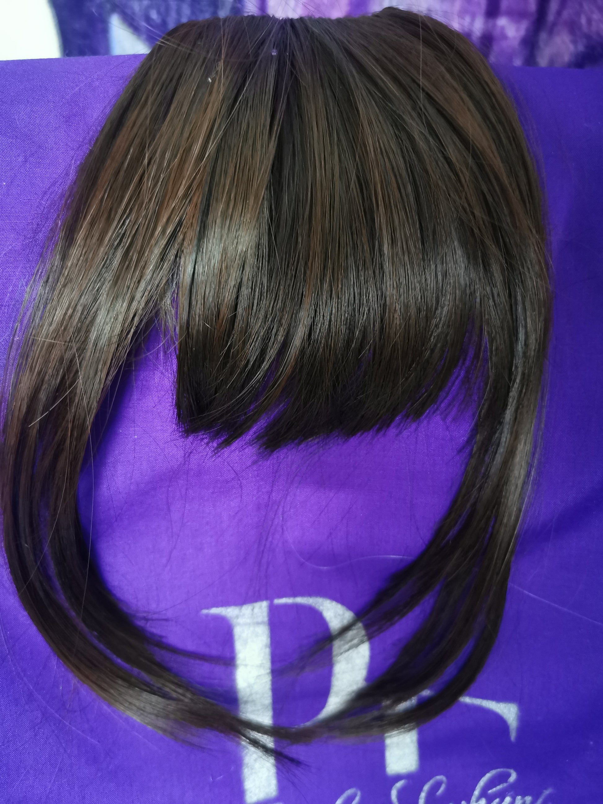Women's Synthetic Hair Clip-In Front Bangs - Natural Look Clip-In Extensions with No Visible Clips, Dark Brown, Seamless Blending for Everyday & Special Events, Easy to Style & Maintain, Salon-Quality Hairstyle for Parties, Weddings, Photoshoots - Natural Look Hairpiece, Photoshoot Hairpiece, Smooth Texture, Fashion Enthusiasts.