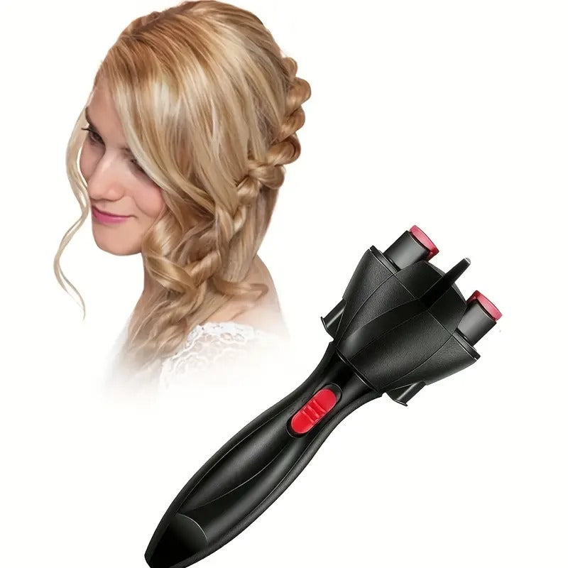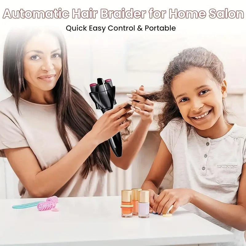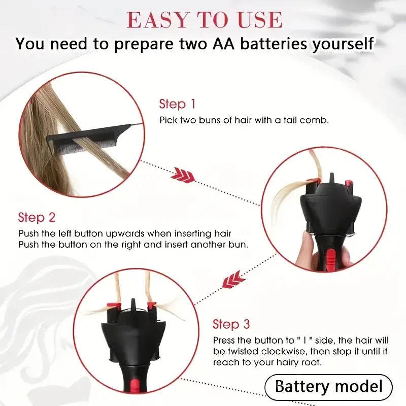 Black - Automatic Hair Braider/Wireless Portable Women'S Twist Styler/Lazy Person'S Tool/One-Click Quick Curler, DIY Curly Hairstyle Maker, Anti-Tangle Design for Home & Travel Use, Battery-Powered (AA Batteries Not Included).