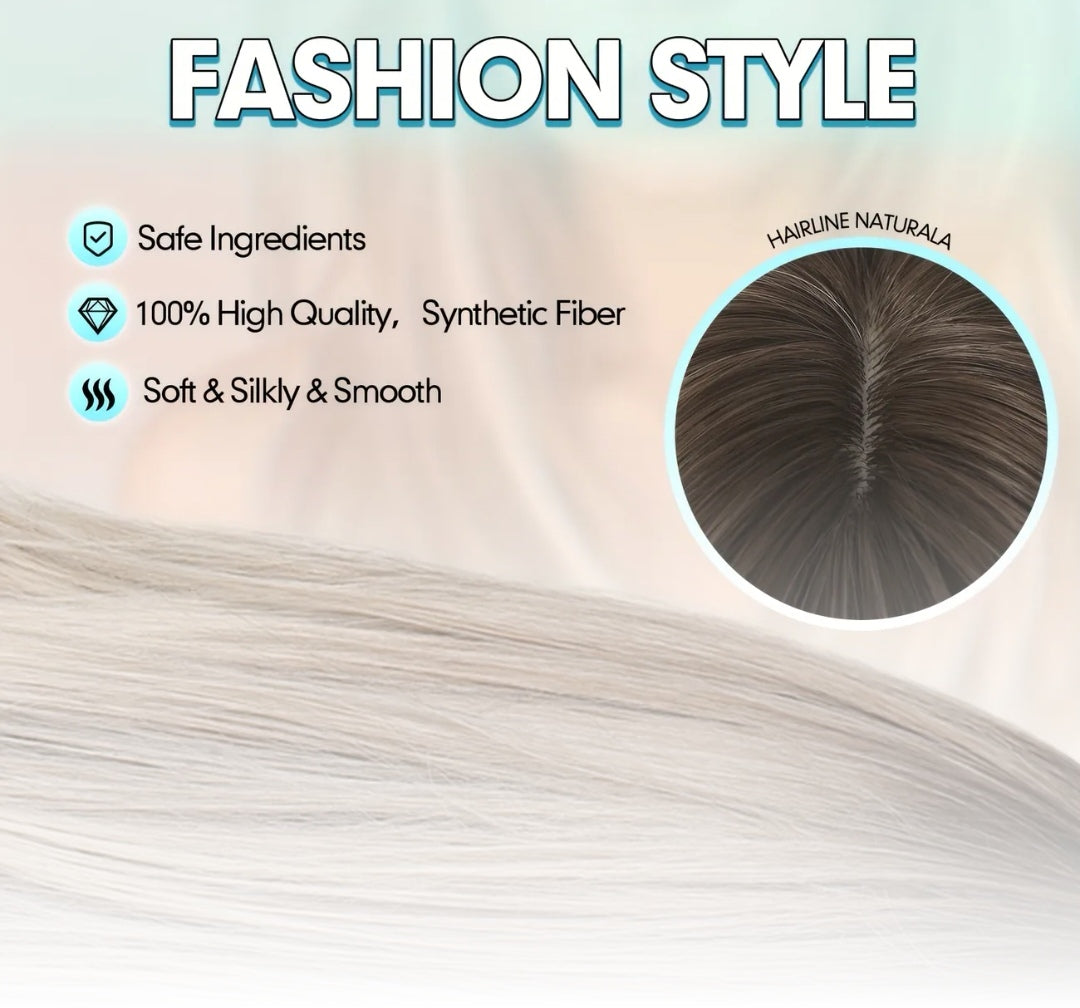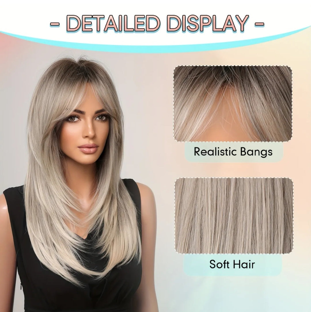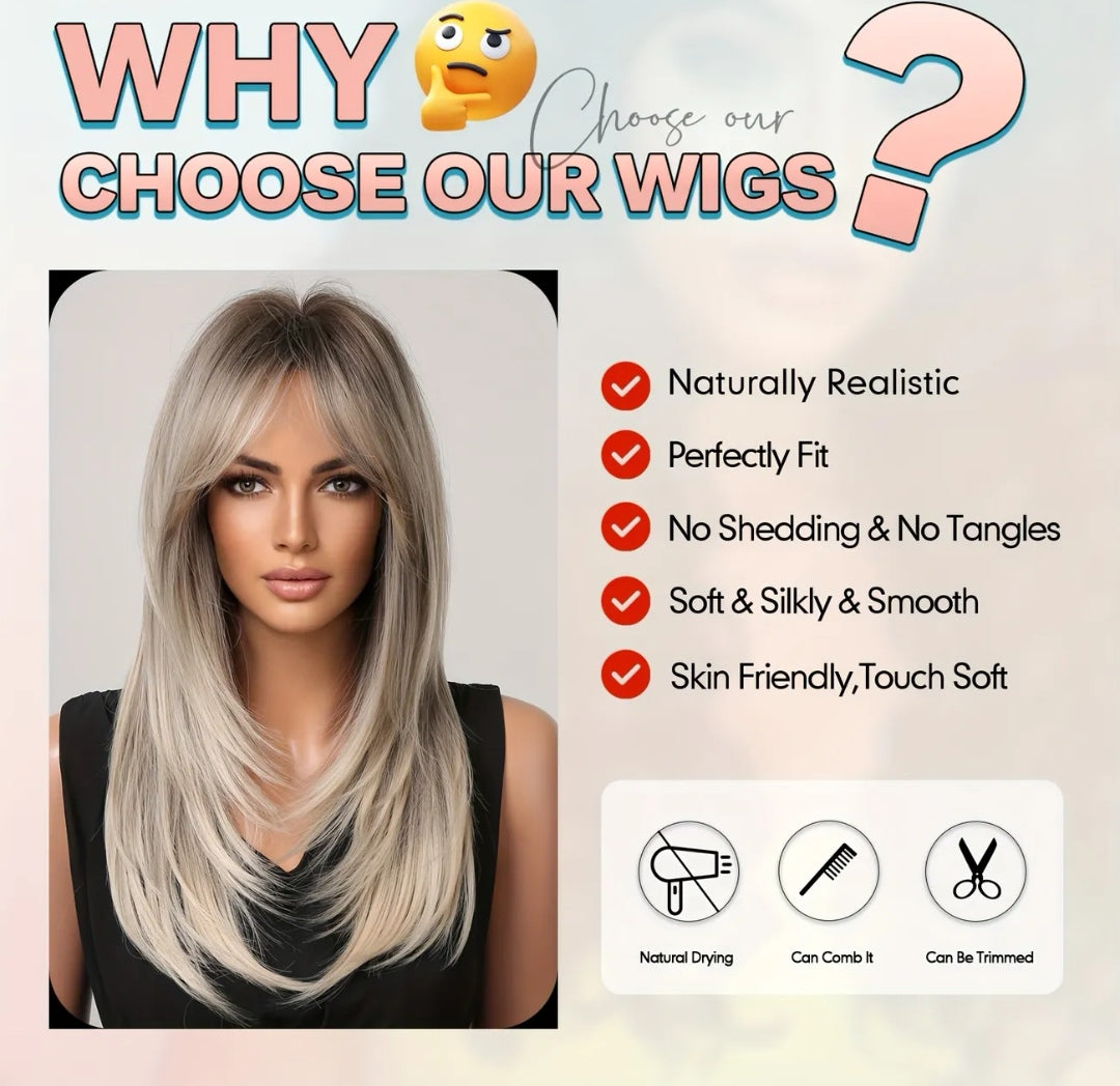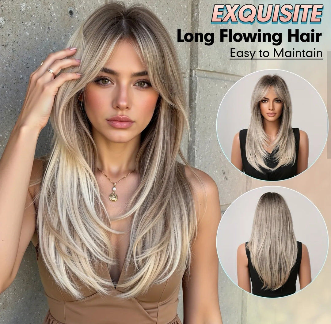 55.88 cm White Golden Straight Wig with Figure-of-Eight Bangs - Heat-Resistant Fibers, Rose Net Cap & Natural Brown/Blonde Highlights | Comfortable & Easy Maintenance Long Hair Wig for Women, Perfect for Halloween, Christmas, Back to School | Suitable for All Light Beige Tones (Beginner-Friendly) - High-Temperature Matte Fiber, Fluffy Hair Texture, Natural Look & Feel, Versatile Styling Options.