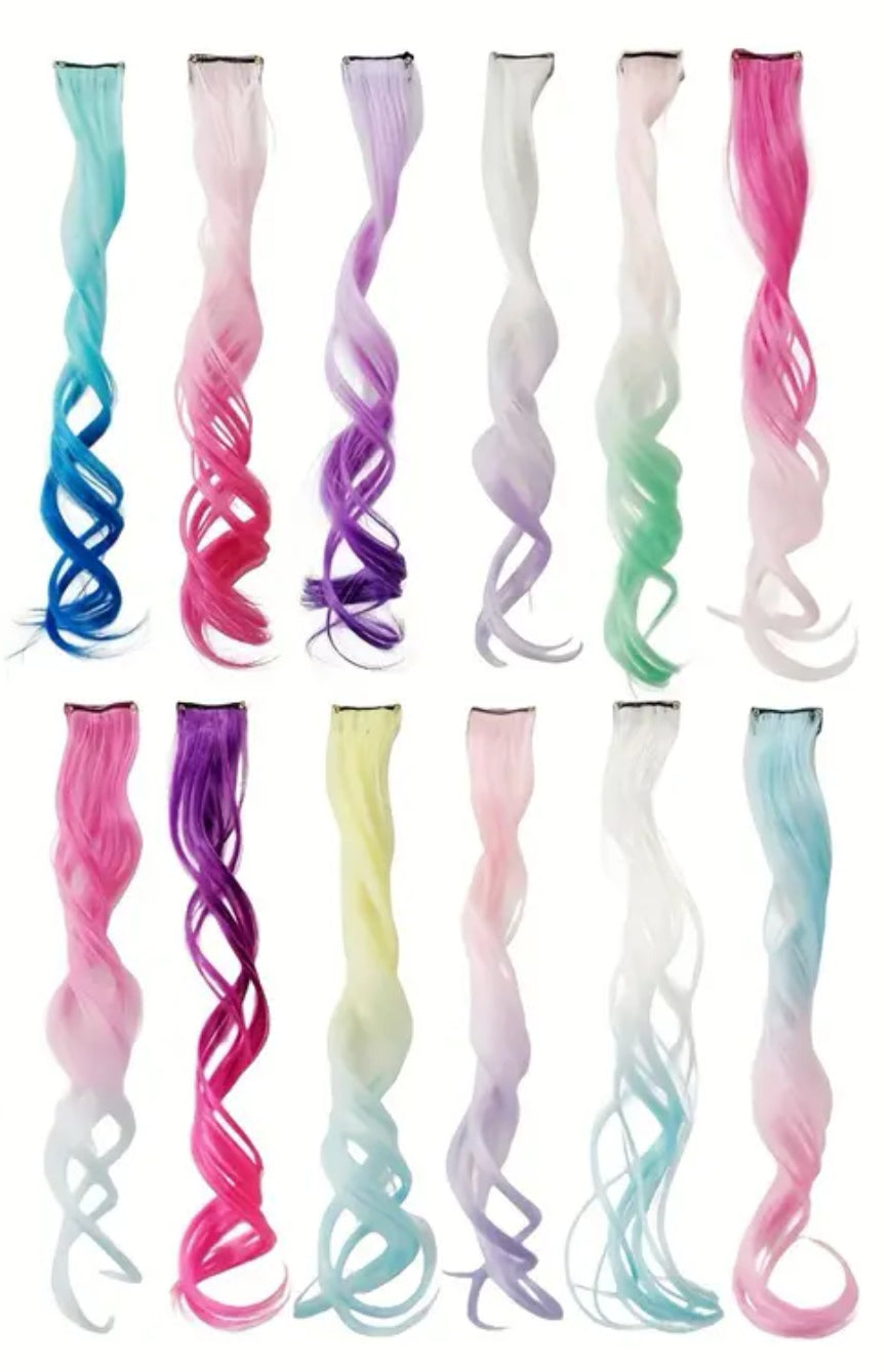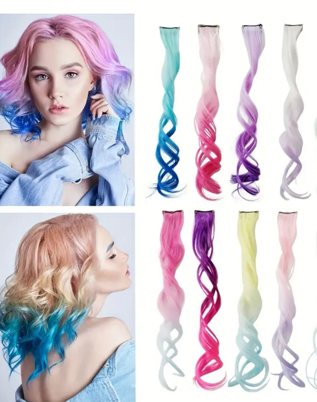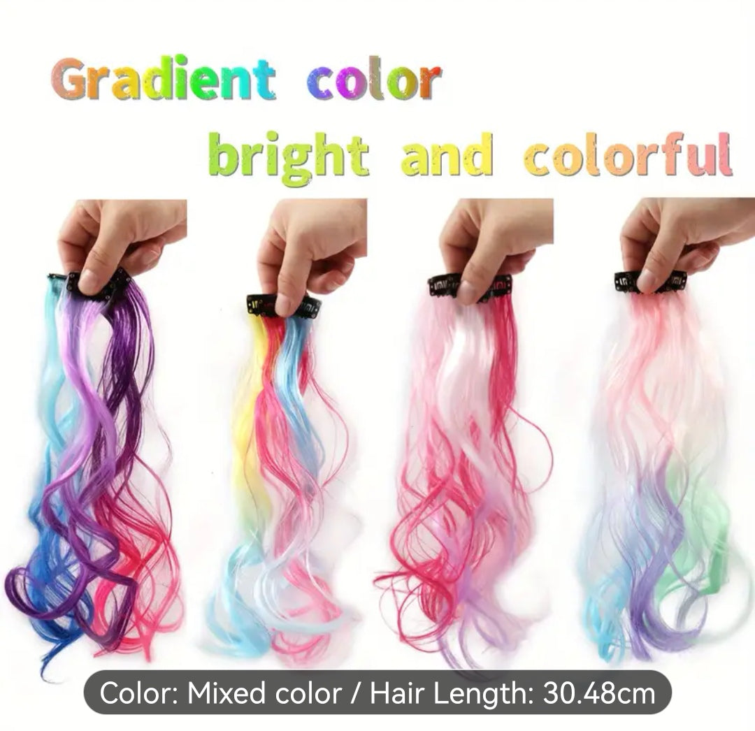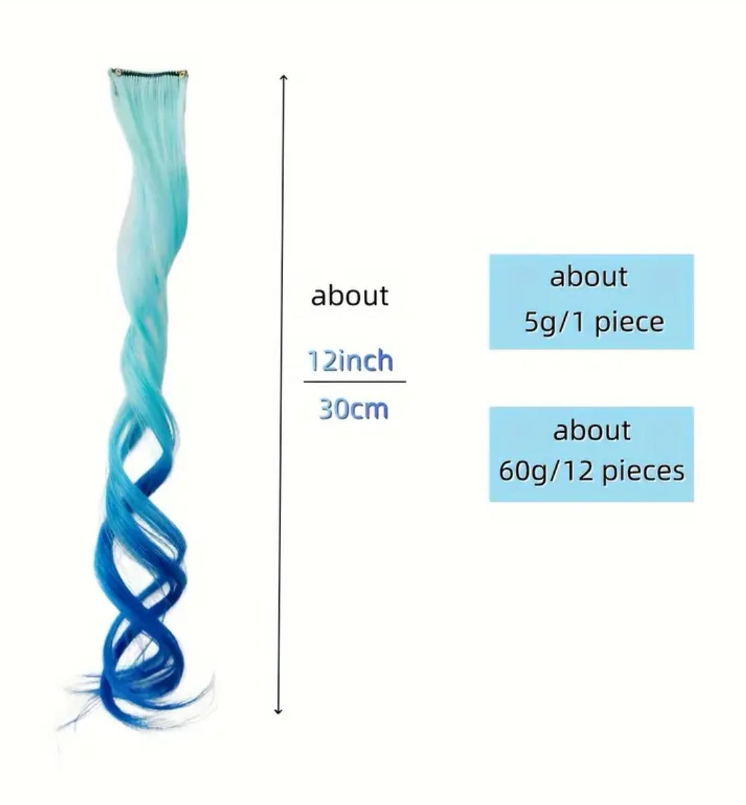 1 Pc Vibrant Ombre Curly Hair Extensions, 12-Inch Clip-In Synthetic Hairpieces for Women - Gradient Colors, Perfect for Parties, Daily Wear & Styling, Hair Accessories.