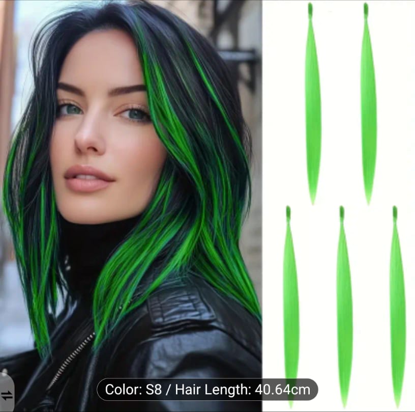 Lime Green - 10Strands 40.64 cm Party Color Hair Extensions Set I-Tip Fashion Long Straight Pieces Synthetic Heat Resistant Top Extensions Hair Accessories for Christmas and Daily Wear.