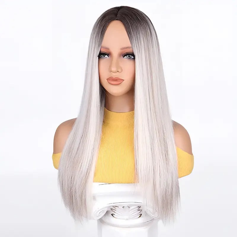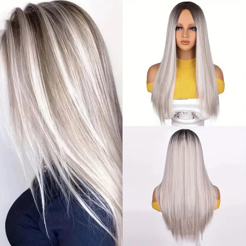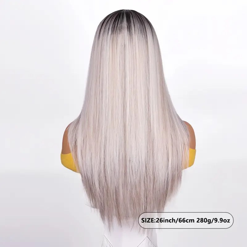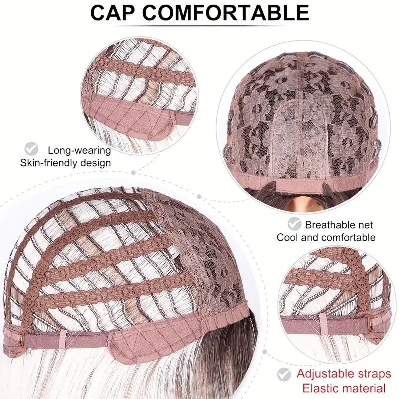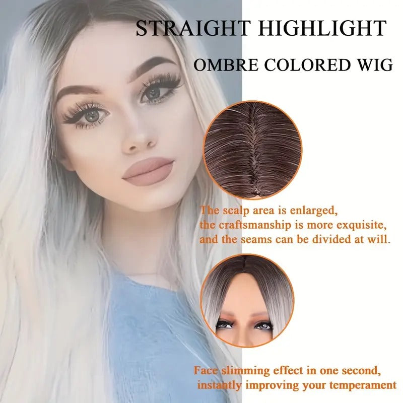 26-Inch Women'S Elegant Straight Ombre Wig - High Temperature Fiber, 150% Density, Rose Net Cap, Breathable & Adjustable for All - Soft Touch Synthetic Hair for Daily Use and Festivals.