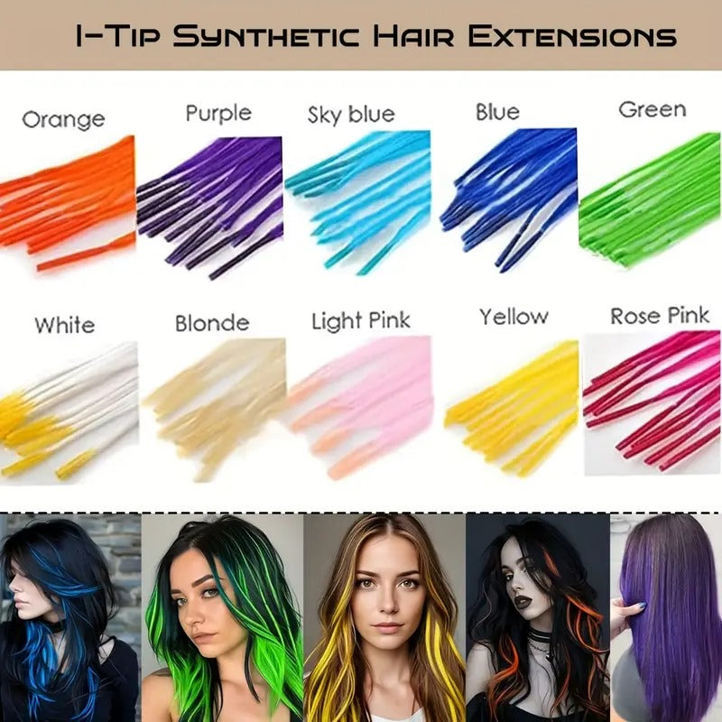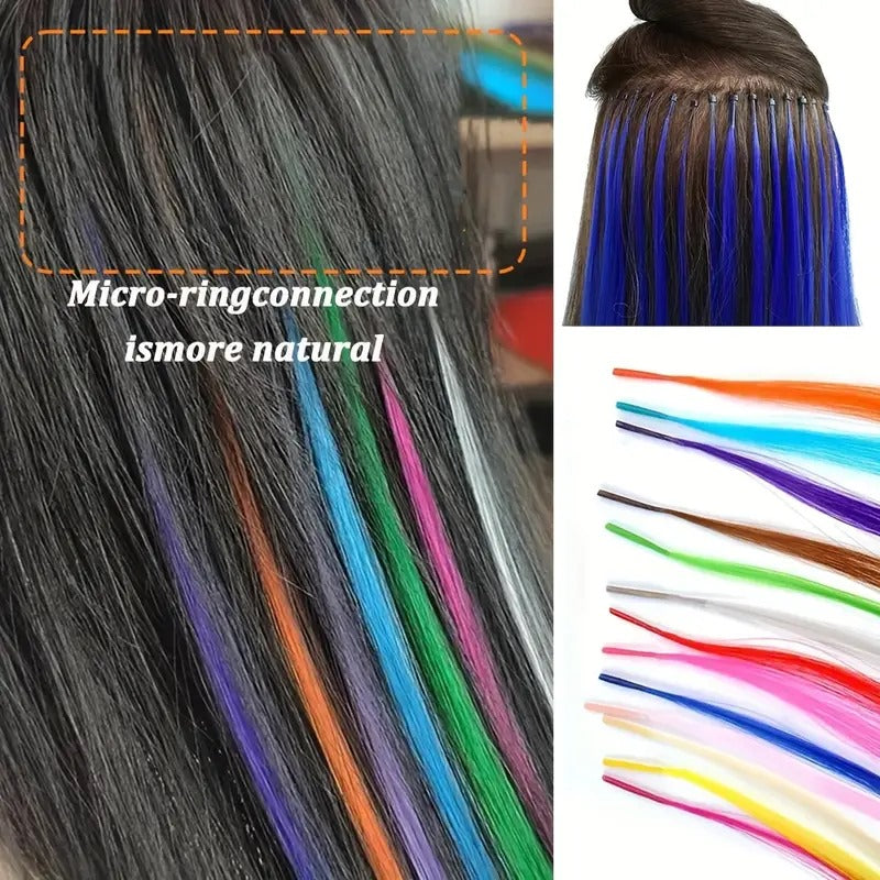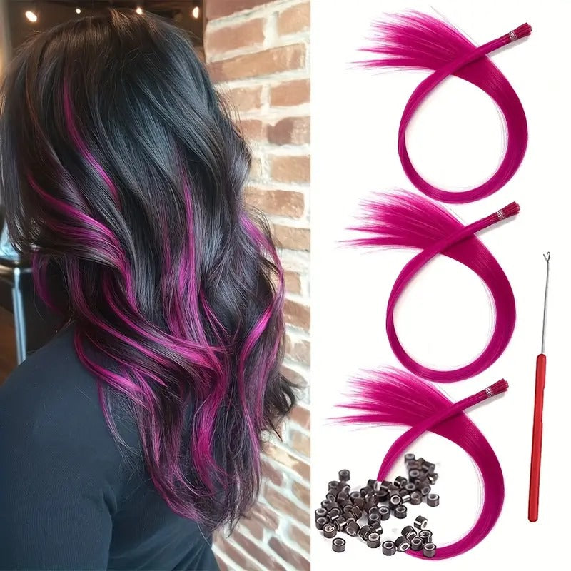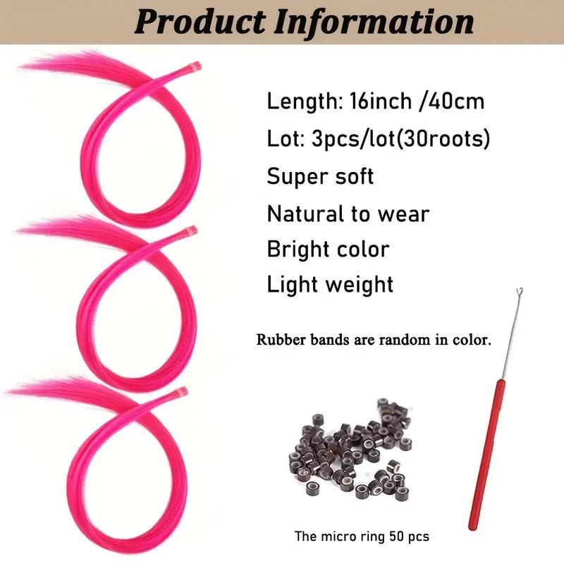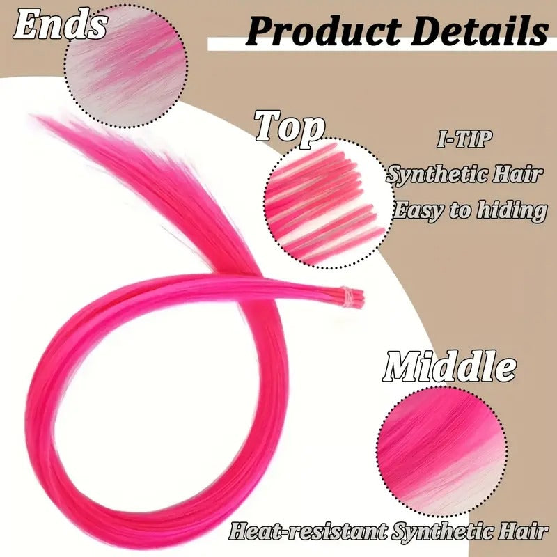 30 Roots/Lot Synthetic I-Tip Hair Extensions - Heat-Resistant Colorful Pink Hairpieces with Feather Micro Rings, Long Straight Hair Extensions for Fashion Women,Rainbow hair, Holiday Hair Accessories.