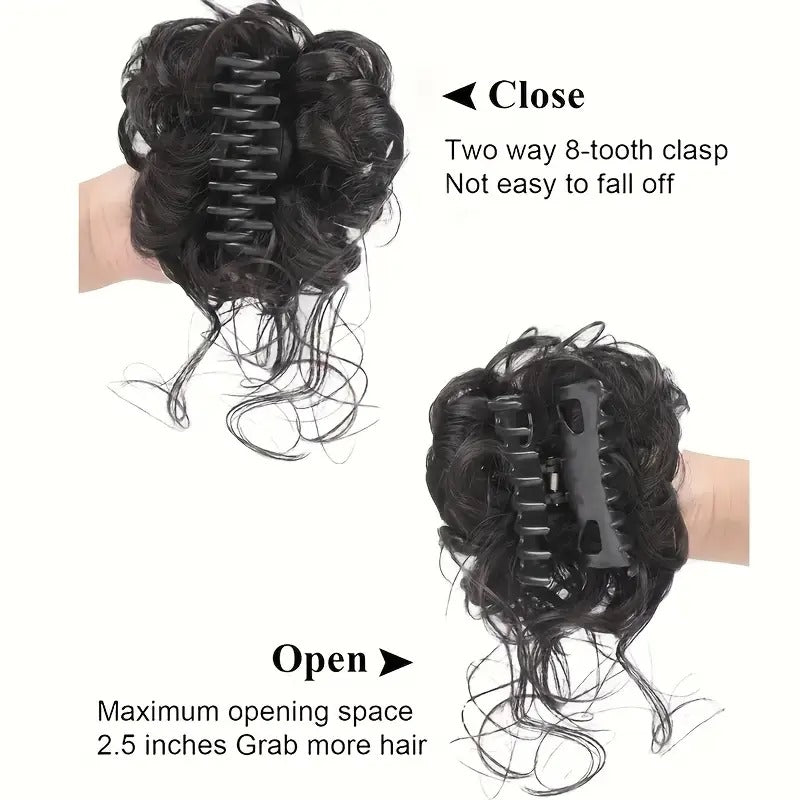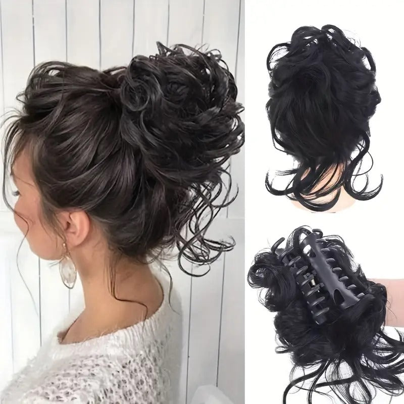 Elegant Messy Curls Claw Clip Hair Bun - Multi-Functional Women'S Synthetic Hair Accessories, Fashion Hair Pins for All Occasion.