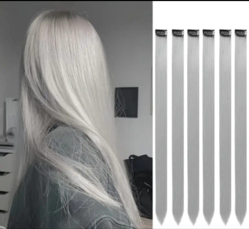 60.96cm / Light Grey 1pcs Clip-In Hair Extensions - 60.96 cm Long Straight Synthetic Hairpieces with Vibrant Green & Ombre Highlights, Heat-Resistant & Durable for Women &, Party Highlights & Everyday Styling, Hair Extensions For Women, Versatile Hairpiece.