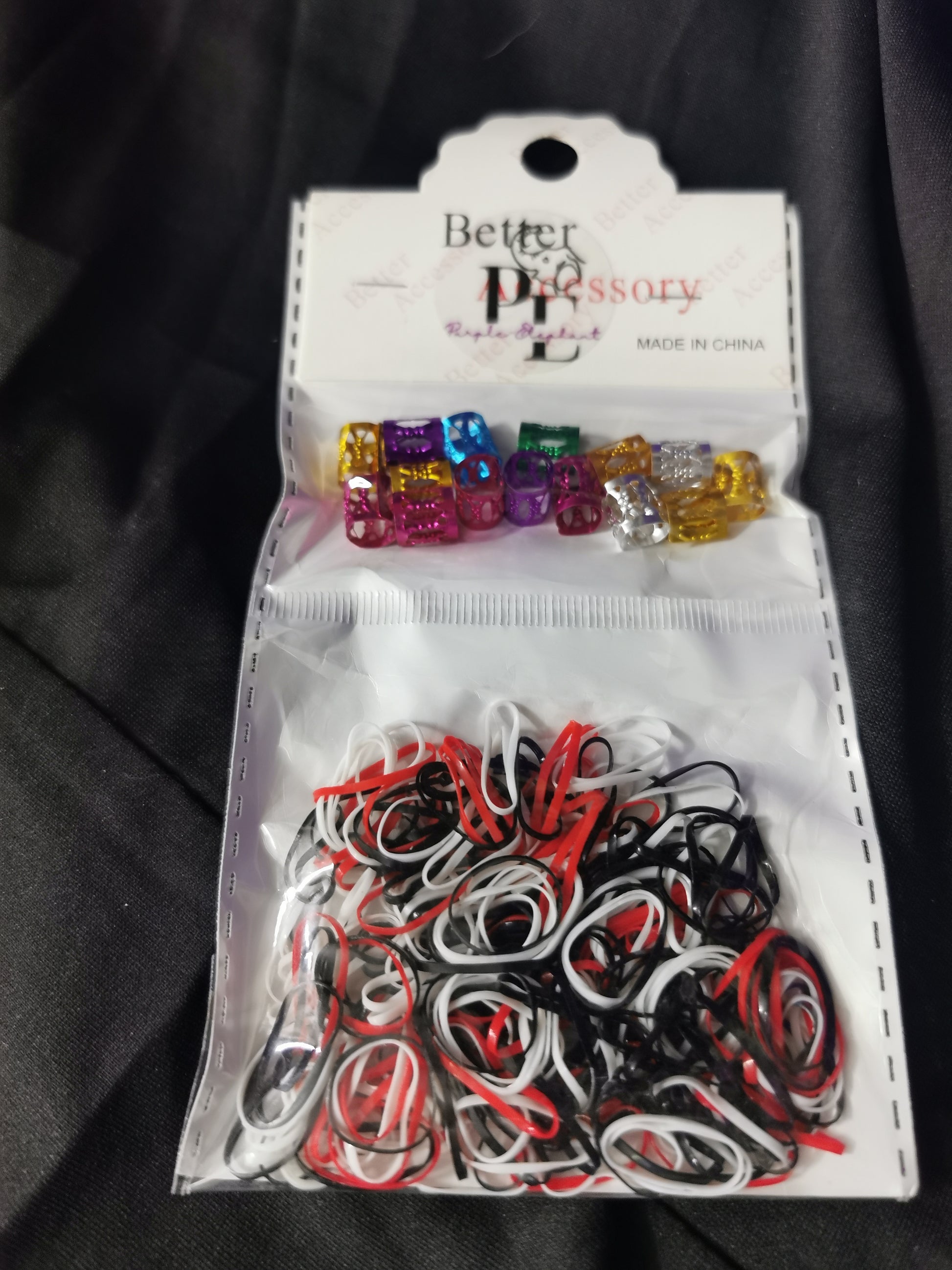 Elegant & Vintage Multicolor Hair Accessory Set - Alloy Oval Hollow-Out Beads for Braids, Single Pack - Chic Monochrome Dreadlock Rings for Stylish Updos, Hair Jewelry, hair elastics black,white and red.