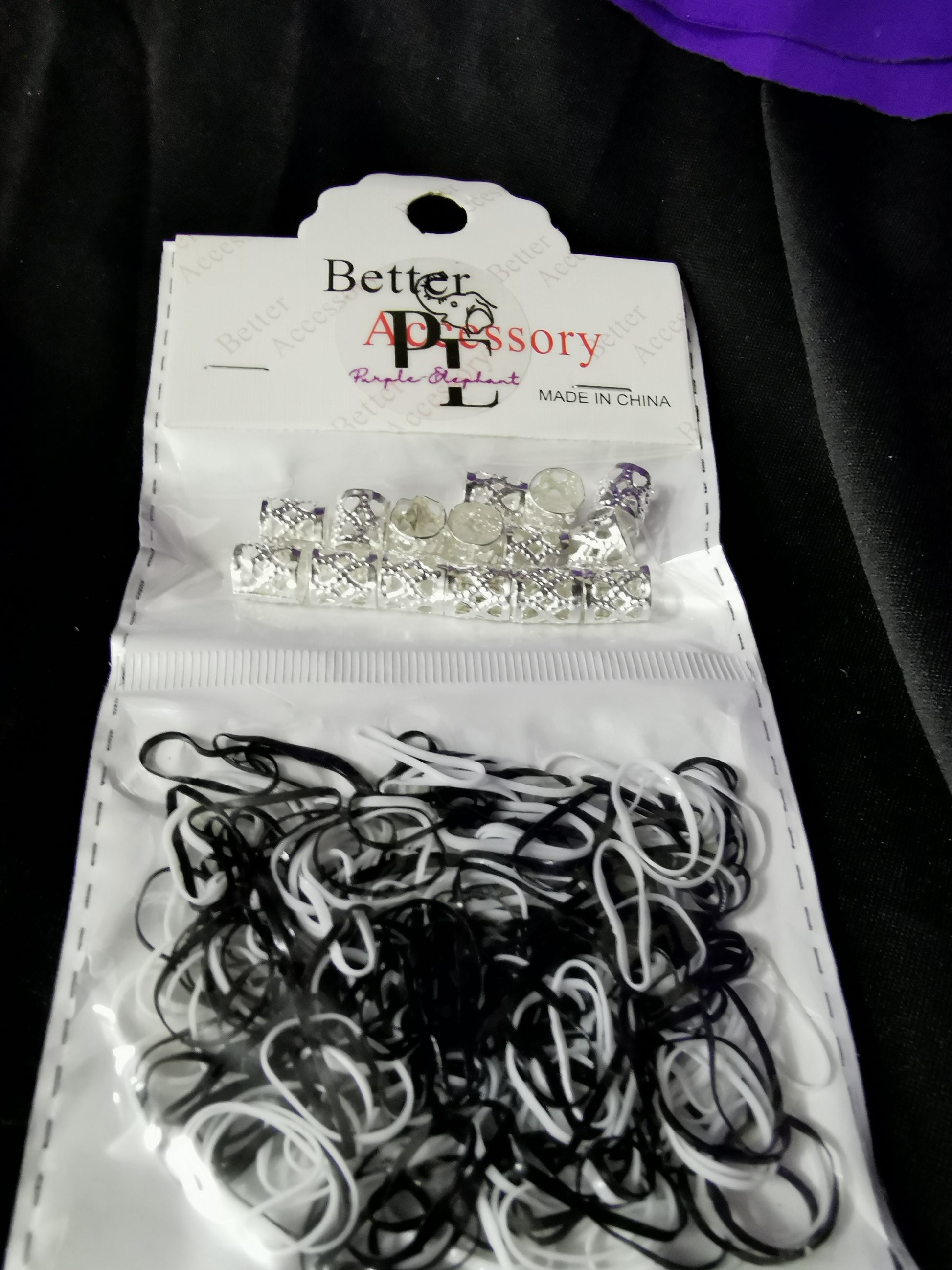 Elegant & Vintage Silver Hair Accessory Set - Alloy Oval Hollow-Out Beads for Braids, Single Pack - Chic Monochrome Dreadlock Rings for Stylish Updos, Hair Jewelry, hair elastics black,white..