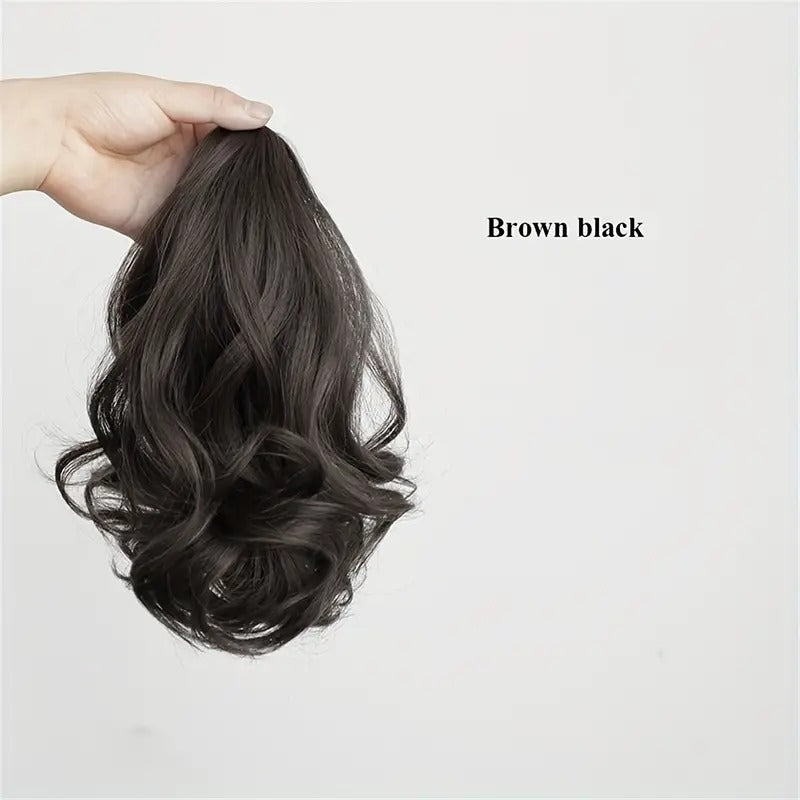 11-Inch Elegant Ponytail Wig with Black Bow - Soft Curly Wave & Sleek Straight Styles, Natural-Looking Dark Brown Hair for Everyday & Special Occasions, Versatile Hairpiece, Festive Hairpiece, Secure Fit Hairpiece.