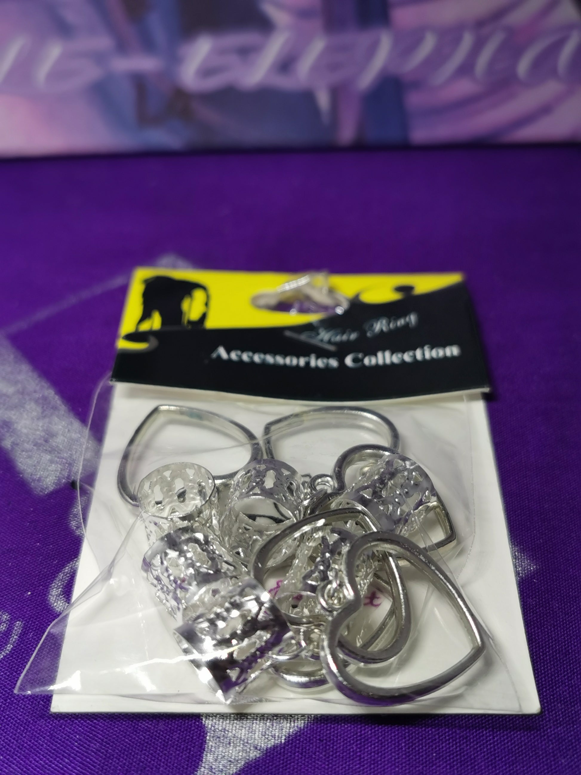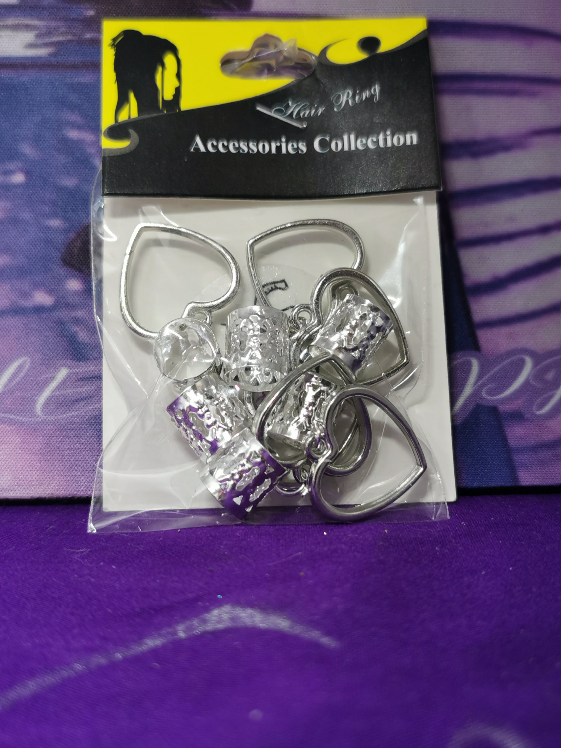 Heart - Braid Hair Accessories, hair jewelry designed for braids and dreadlocks. Silver-colored accessories, including cuff, and large Heart charm, which can be used to add a decorative touch to hairstyles.