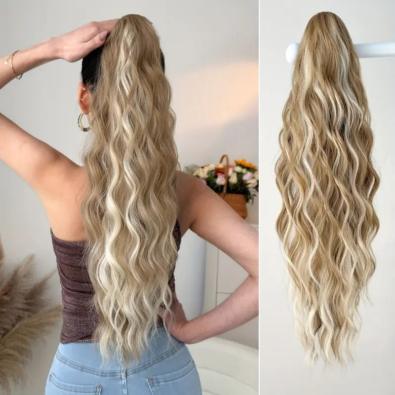Large Claw Clip Synthetic Ponytail Extension for Women, Hair Growth, Large Wavy Water Ripple Curl.