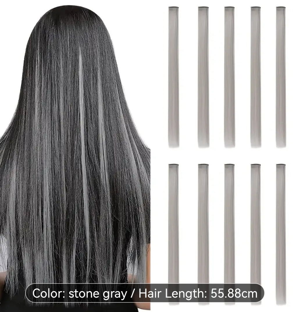 1 Pc Women'S 55.88cm Multi-Color Straight Synthetic Hair Extensions - Vibrant Stone Grey Strands, High-Temperature Fiber, Perfect for Cosplay, Halloween, and Christmas Parties, Party Hair Accessories | Vibrant Hair Color | Highquality Fiber, Hair Accessories for Parties.