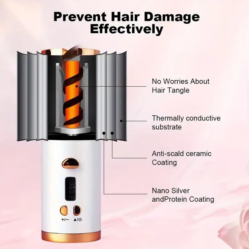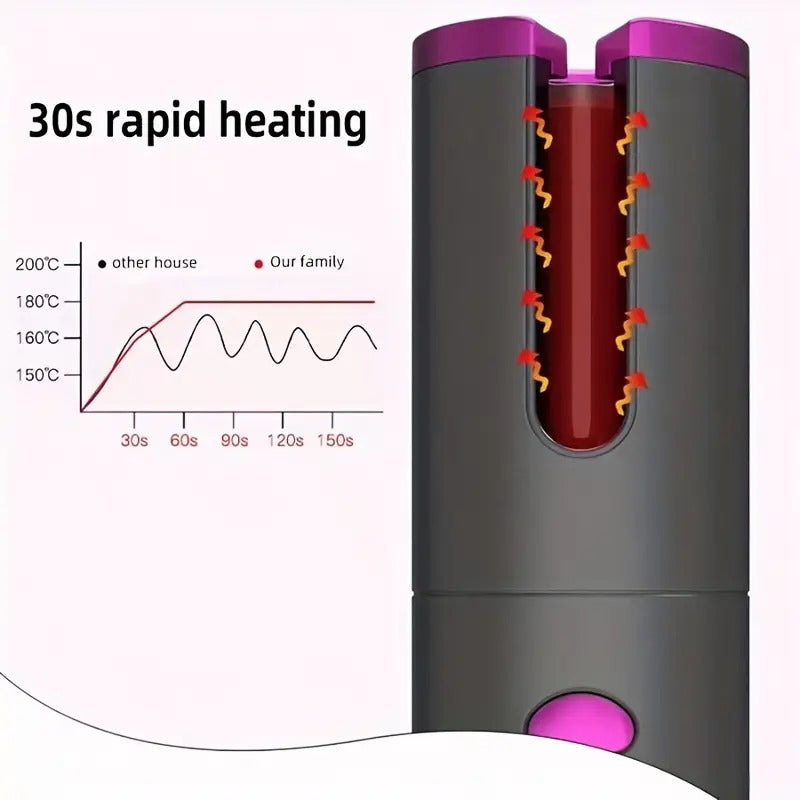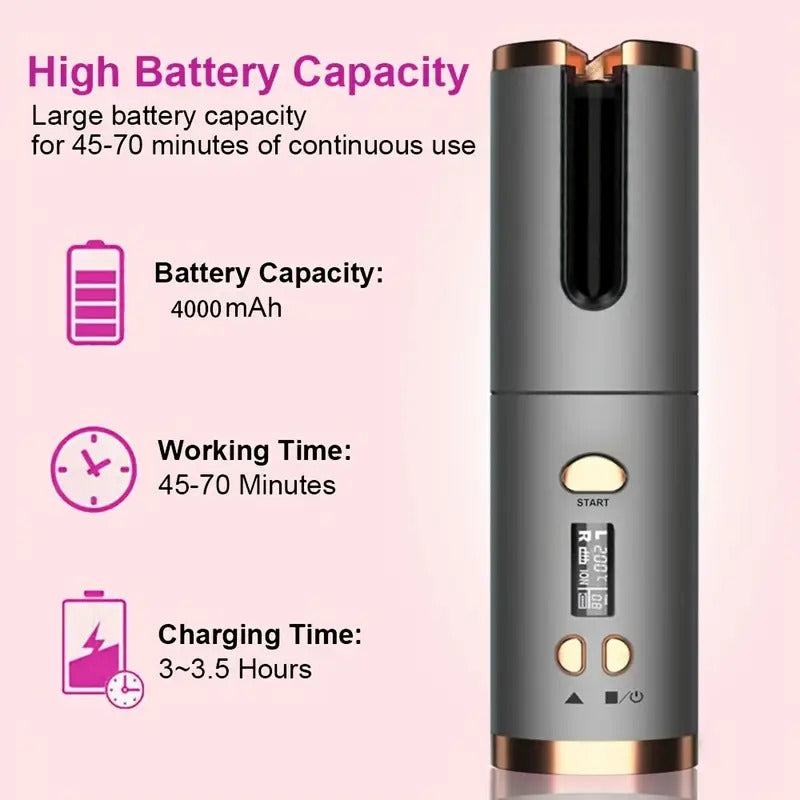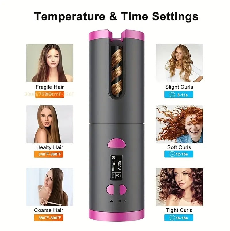 Gray purple - USB LCD Wireless Cordless Hair Curler with Auto-Port, Wireless 5.0, Rechargeable Battery, 36V Safe Voltage, Anti-Scald & Thermometer, Multiple Colors for Home Use, Holiday Gifts for Family & Friends, Hair Styling, Sleek Design, Smart Electronic Device.