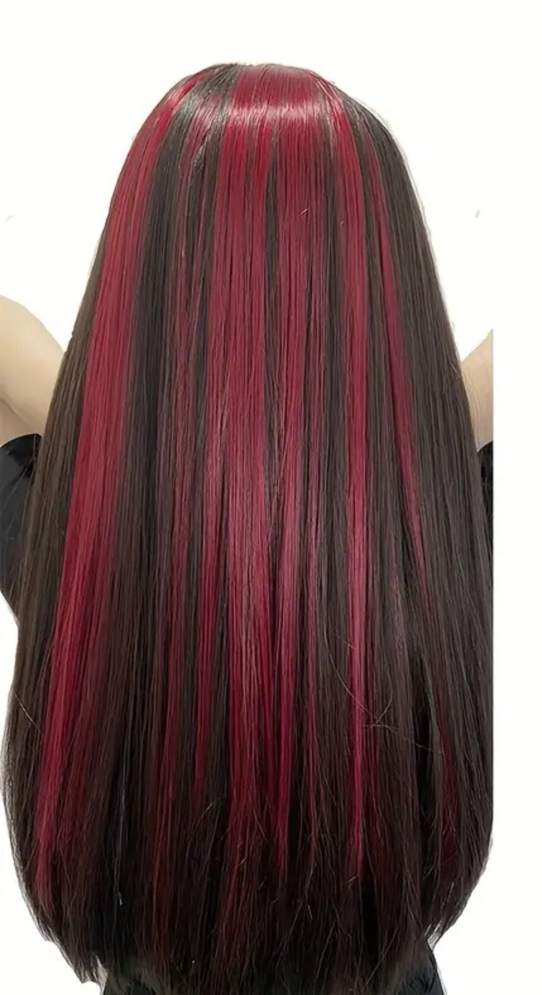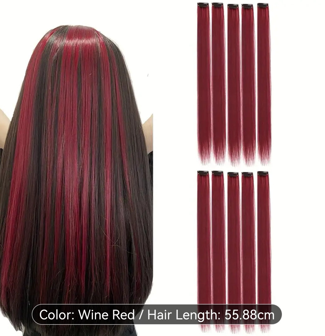 1 Pc Women'S 55.88cm Multi-Color Straight Synthetic Hair Extensions - Vibrant Wine Red Strands, High-Temperature Fiber, Perfect for Cosplay, Halloween, and Christmas Parties, Party Hair Accessories | Vibrant Hair Color | Highquality Fiber, Hair Accessories for Parties.