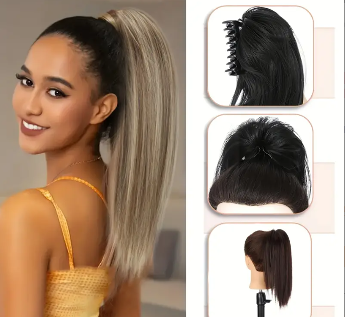 Straight Ponytail Synthetic Claw Clip Ponytail Hair Extensions Claw Clip Messy Hair Bun Hairpiece for Women Hair Accessories