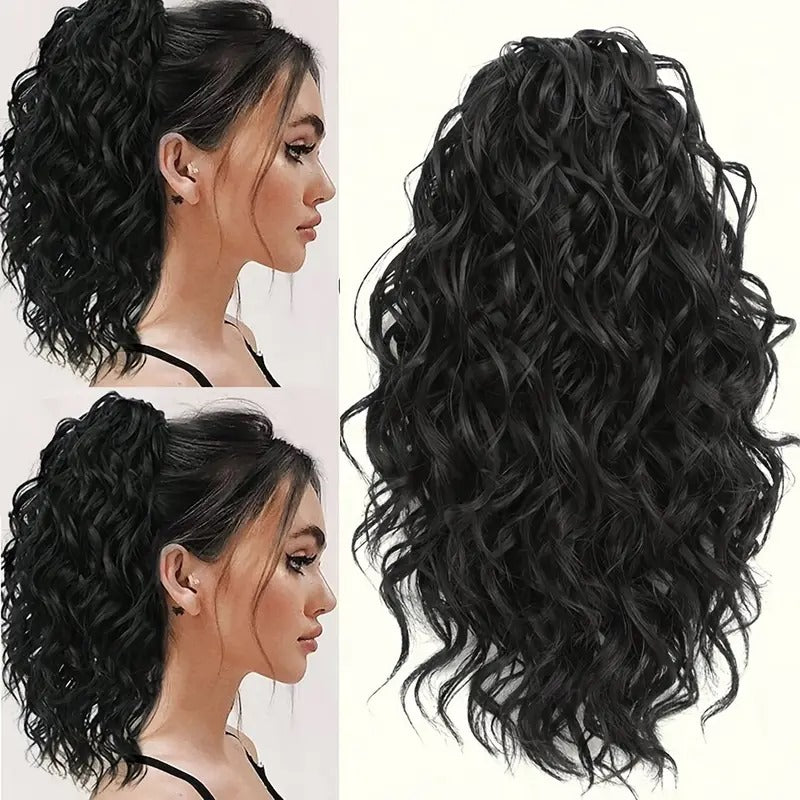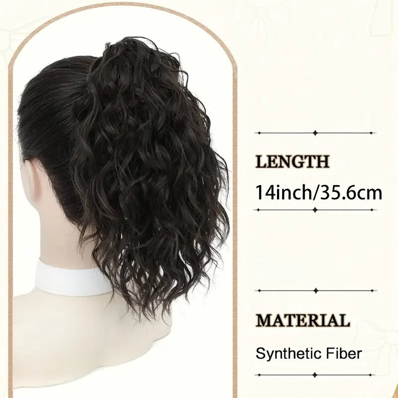 14-Inch Water Wave Small Claw Clip Ponytail Synthetic Hair Extensions in Black, Suitable for Women to Style Their Hair for Outings, Festivals, And Cosplay.