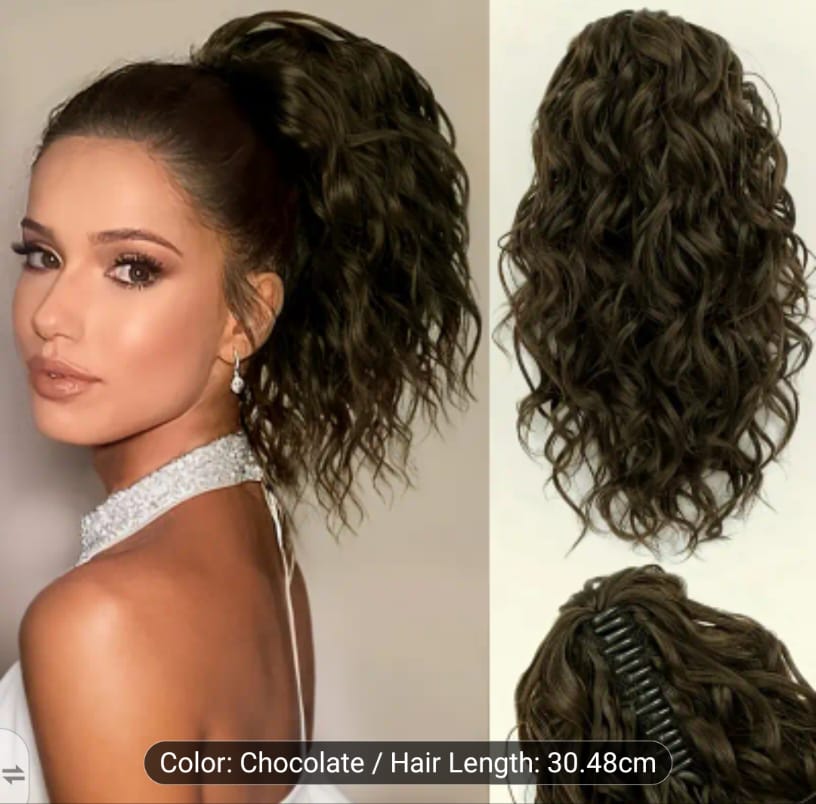 30.48cm / Chocolate Women's 12" Afro Curly/Kinky Wig - Voluminous Wavy Ponytail with 8-Tooth Clip-In Attachment, Natural Brown/Black/Dark Brown Colors, Heat-Resistant Synthetic Hair for Parties, Everyday & Special Events - Easy Application & Damage-Free Removal - Suitable for All Light Beige Tones - Business & Casual Wear - Quick-Style Wavy Curly Ponytail Hair Extension with Secure Grip & Natural Look.