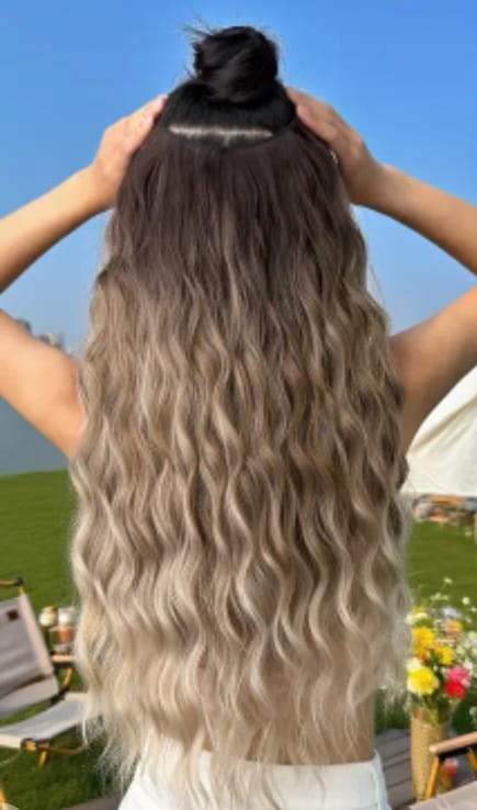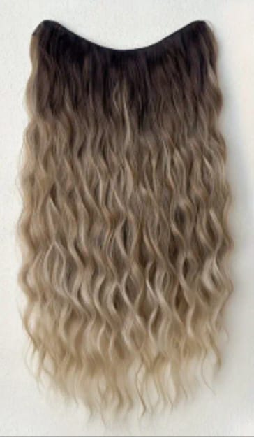 60.96cm / Brown Gradient One-Piece V-Shaped Hair Extensions - Heat-Resistant Synthetic Fiber Hairpiece with Natural Water Ripple Curls, Long 24" Length for Women - Perfect for Halloween, Christmas, Everyday & Special Events - Available in Black, Burgundy, Dark Brown, Blonde-Brown Gradient - Easy Clip-In Attachment, Party Hairpiece, Vshaped Design, Secure Clip Attachments, Hair Extension For Women, Curly Hair Extension, Crochet Clip On Braid, Graduated Curly Wave Set, Clip-on Hair Extensions, Clip.