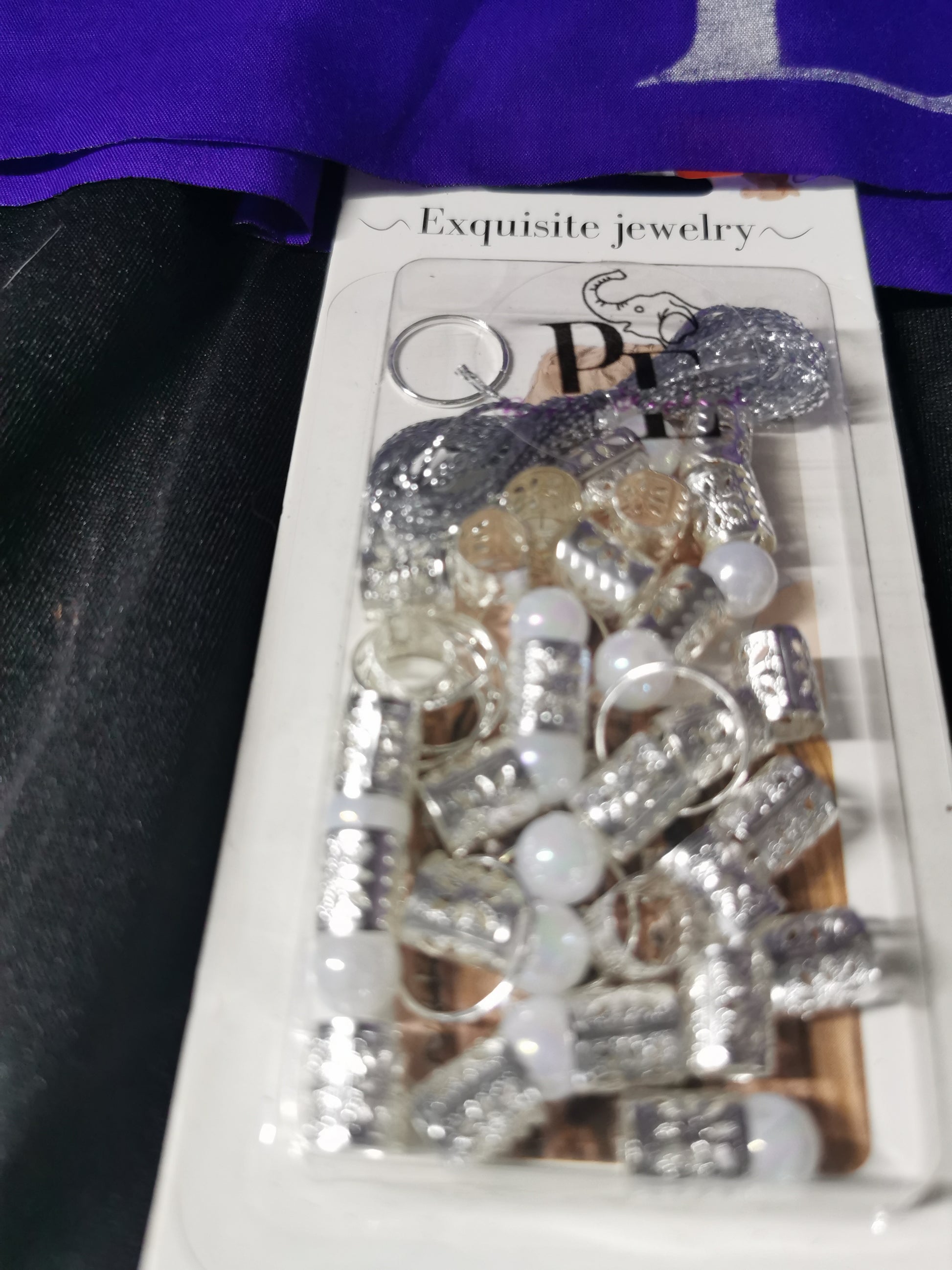 Braid Hair Accessories, hair jewelry designed for braids and dreadlocks. Gold-colored accessories, including cuff, Gold Cord, gold rings and gold pearls which can be used to add a decorative touch to hairstyles. Accessories made from aluminum, flexible and can be adjusted to fit various hair volumes. Personalizing hairstyles for daily wear, parties, or special occasions.