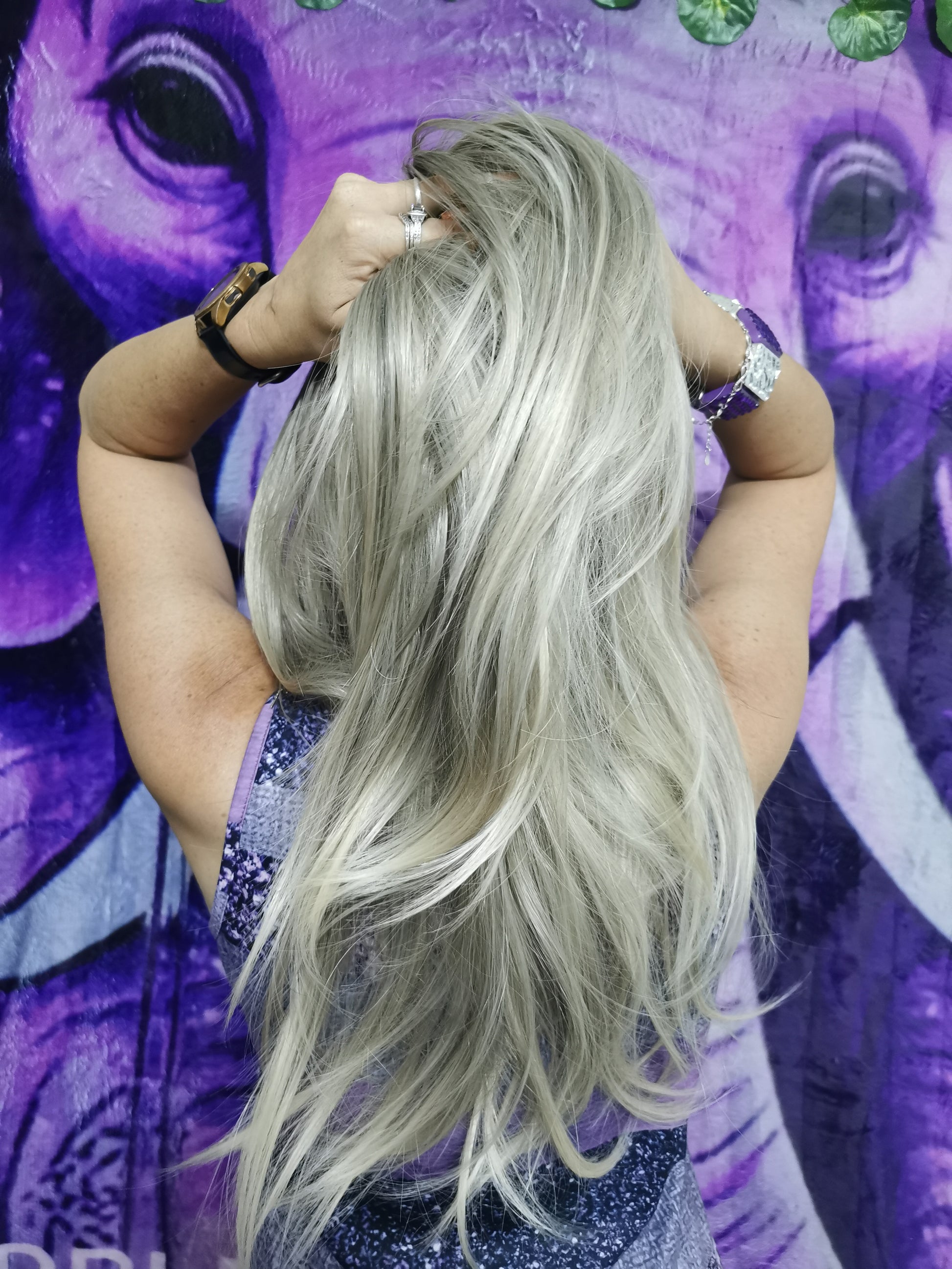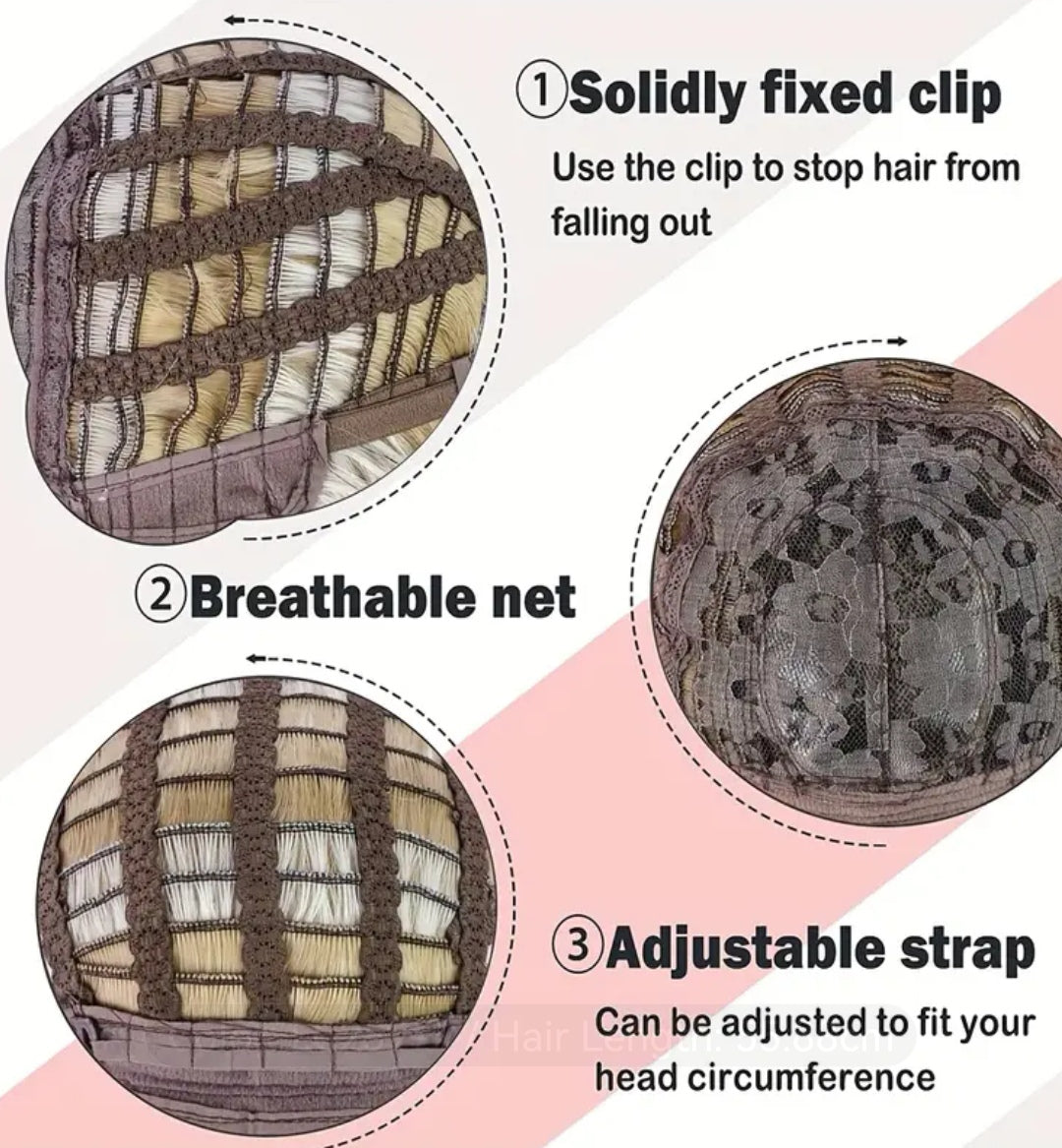 Blonde Ombre Wig for Women - Layered Long Curly Synthetic Hair with Dark Roots, 130% Density, Rose Net Cap.