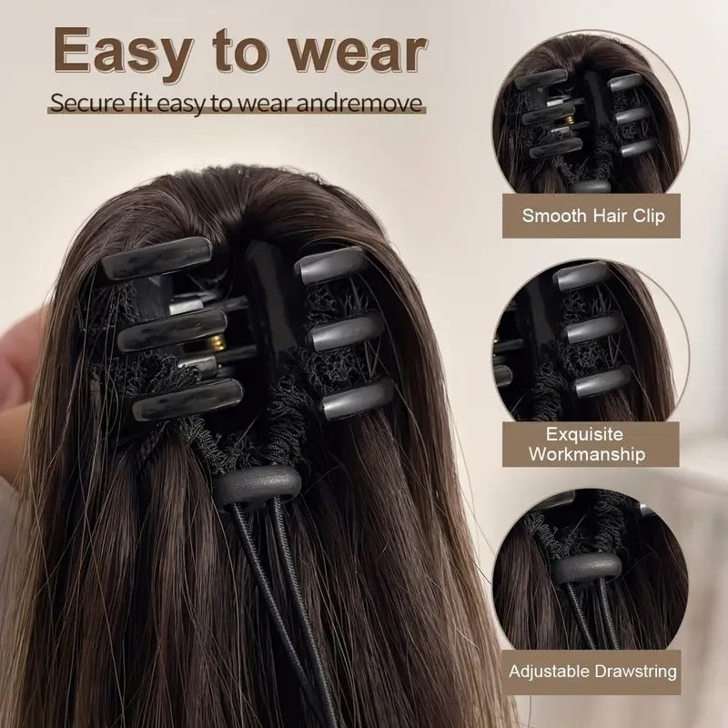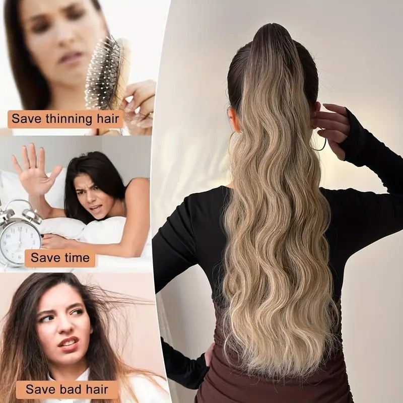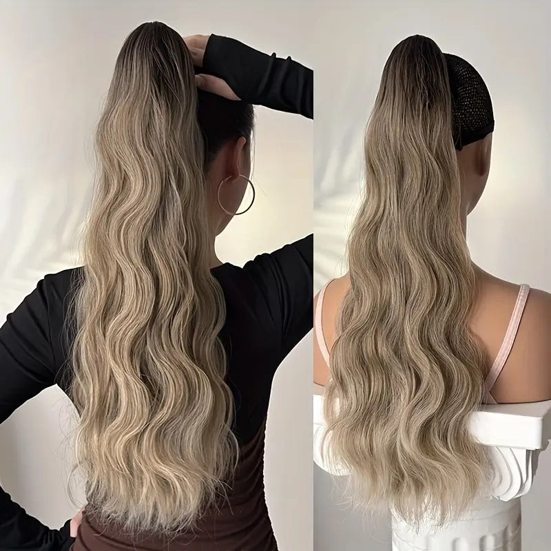 60.96 cm Long Wavy Ombre Claw Ponytail Extension - Heat-Resistant Synthetic Fiber, Blonde to Dark Brown, Women'S Daily Hair Accessory, Ponytail Holder|Wavy Texture|Heatresistant Fiber, Ponytail Hairpiece.