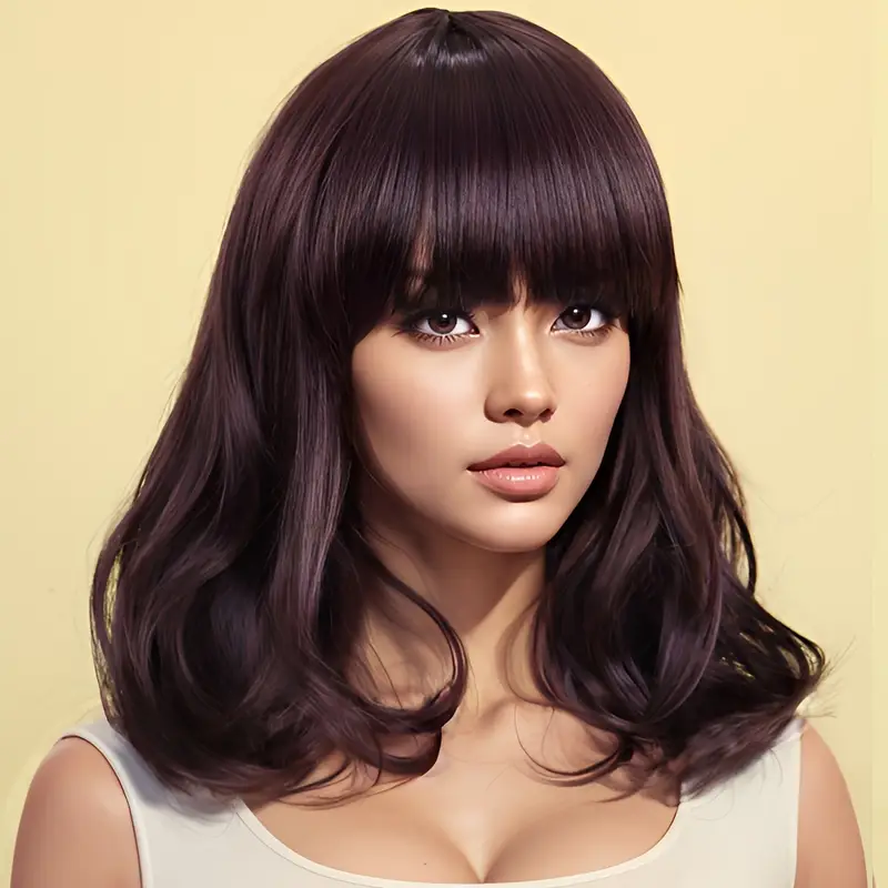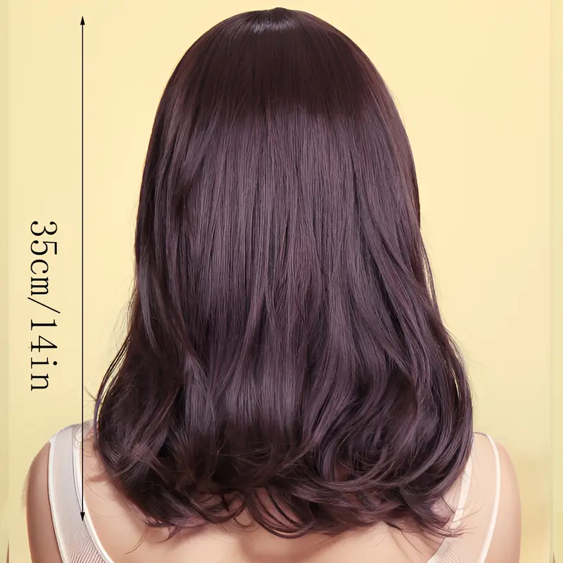 ark Brown, Hair Length: 35.56cm Short Wavy Bob Wig with Bangs - Natural-Looking Brown Synthetic Hair, Heat Resistant, Adjustable Cap, Soft & Breathable for Everyday Style, Hair Wig