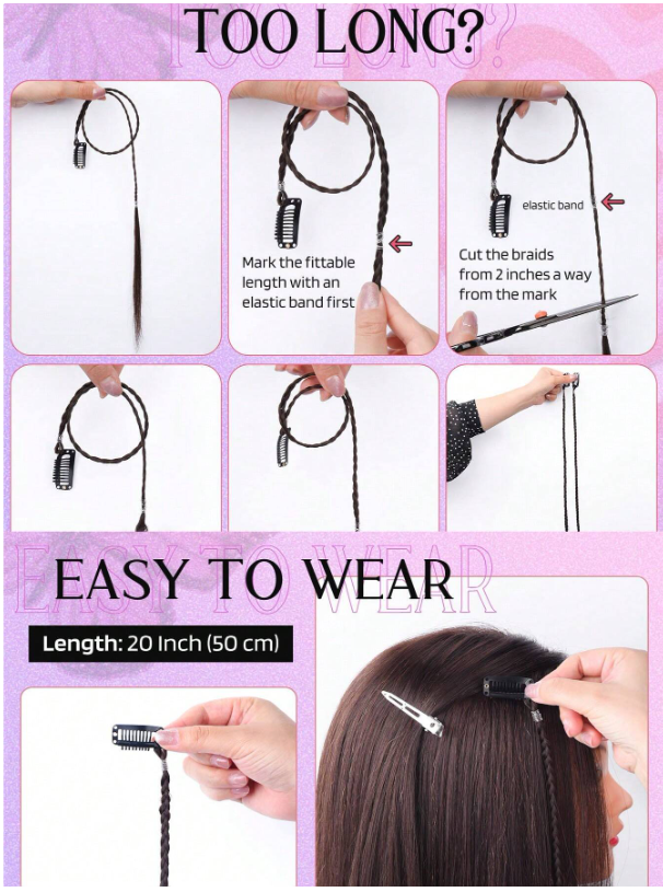 2 PCS Braid Hair Extensions, Clip In Hair Extensions Black Baby Braids Front Side Curtain Long Braided Hair Piece Natural Soft Synthetic Hair Sleek Looking Clip In Hair For Women 18 Inch Synthetic Colored Wigs For Halloween Parties At Music Festivals