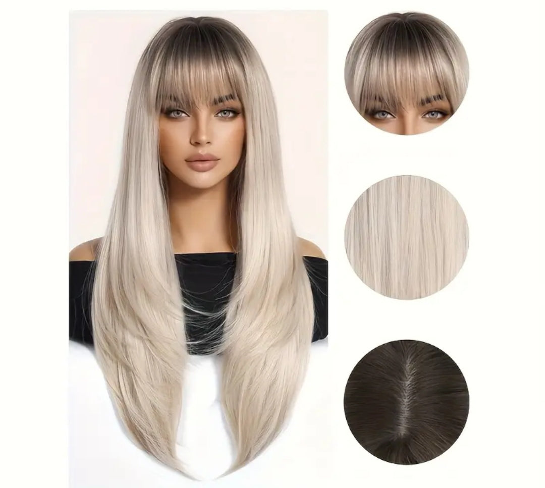 Fantasy Wavy Long Synthetic Wig with Bangs, High Density Fluffy Heat Resistant Viscose Wig, Rose Net Cap, High Temperature Fiber, 66.98 cm, for Women, Cosplay, Daily Wear, Halloween.