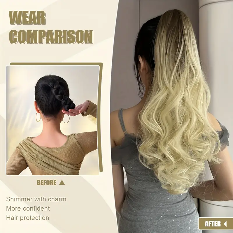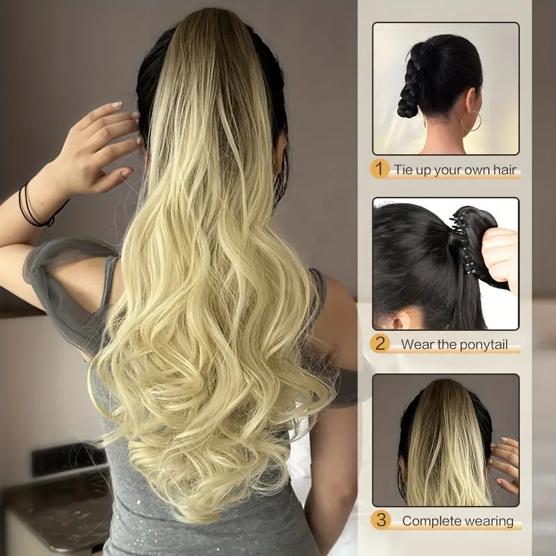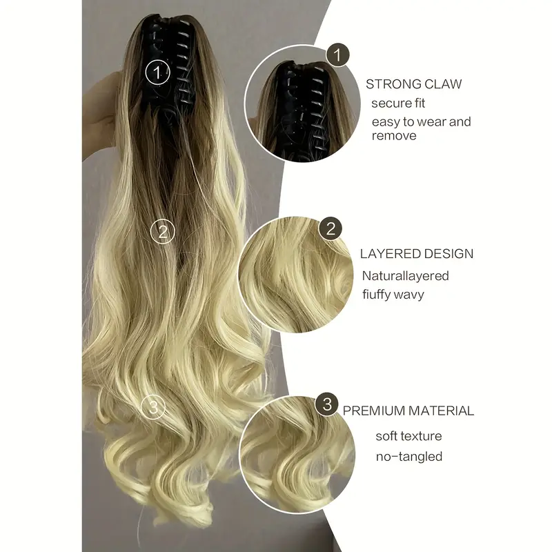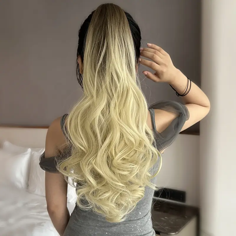 50.8cm Gradient Long Ombre Claw-Shaped Ponytail Extension - Heat-Resistant Synthetic Wig with Yellow to Blonde Gradient, Curly Wave Design for Women'S Daily Use, Ponytail Wig, Easy Application Hairpiece
