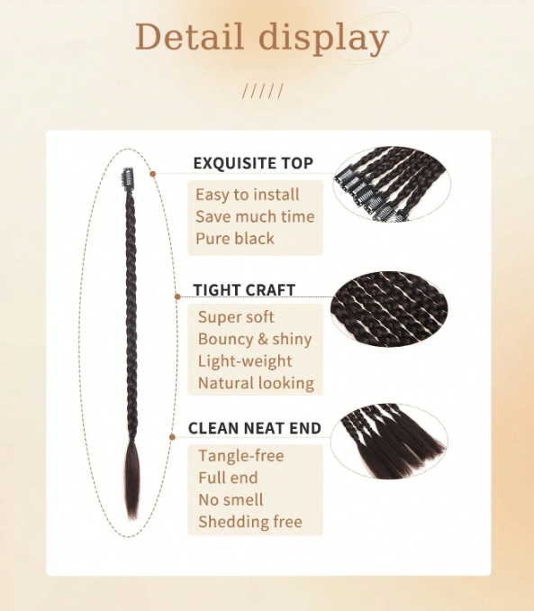 Black Blue Clip Braid Chemical Fiber Hair Extensions Suitable For Women Holidays And Daily Wear Clip Hair Braid Hair Extensions Accessories High Temperature Silk Chemical Fiber Extension For Christmas New Year Carnival Music Festival Use