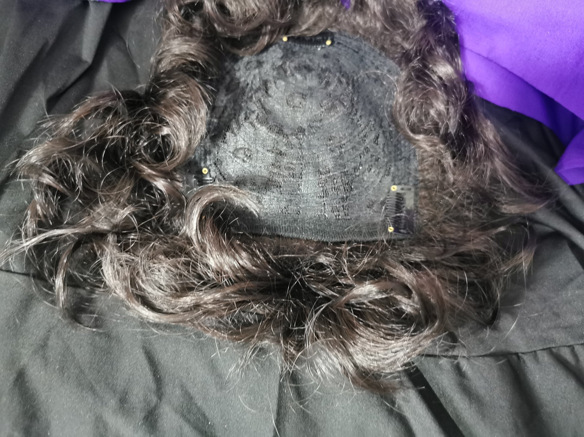 Brown - Women's Short Wavy/Loose Curly Hair Topper Wig Natural Hairpiece with Clip-On/Adhesive Attachment, Heat Resistant Synthetic Hair for Gray Coverage, Volume & Instantly Thick Hair (Lightweight & Breathable for Sensitive Scalp).