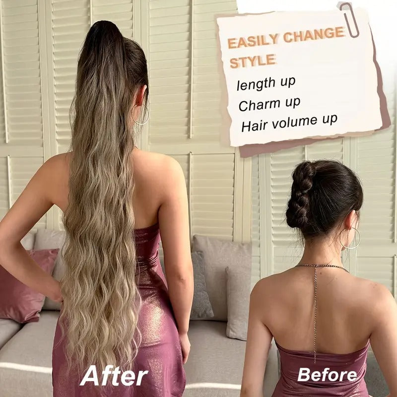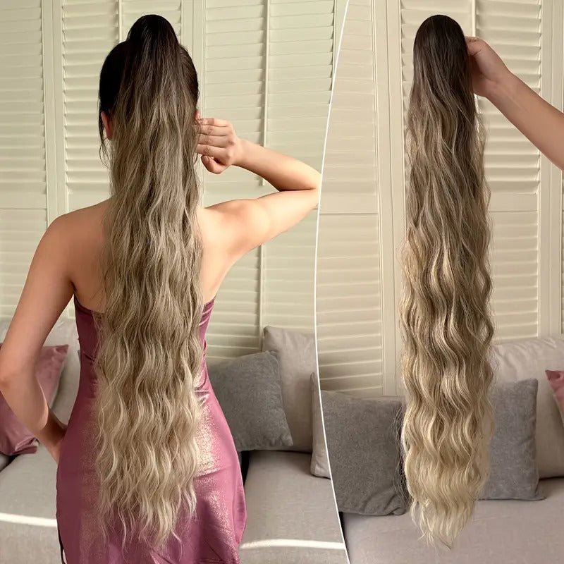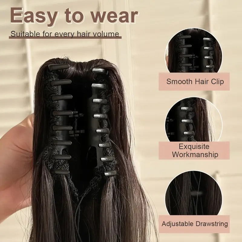 Claw shaped ponytail extension 81.28 cm water wave heat-resistant fiber synthetic ponytail wig, suitable for short hair accessories for Women's daily use.
