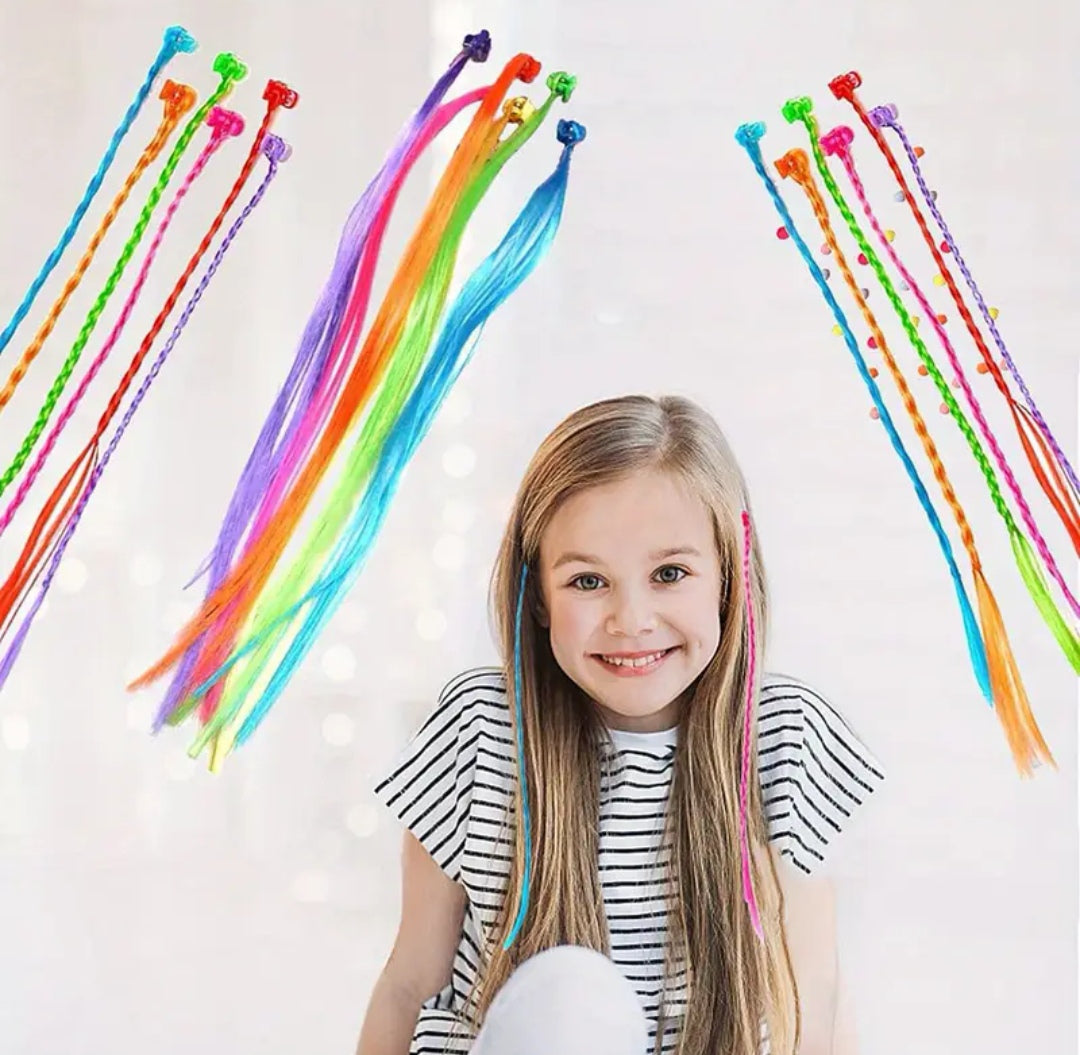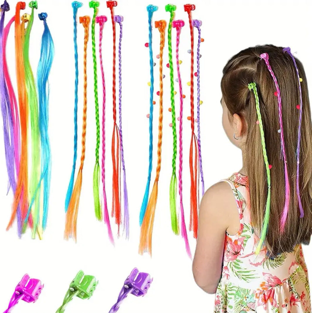 6 Pc Vibrant Rainbow Hair Extensions with Clips - Colorful Braided Extensions for Kids and Teenage Girls, All-Season Styling Accessories, Plastic Material, Non-Textile Weaving Method, Teenage Girl Hair Accessories | Vibrant Hair Extensions | Plastic Hair Accessories, Hair Accessories for Girls.