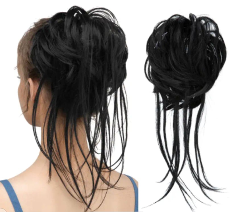 Jet Black Messy Bun Hair Piece For Women Super Long Tousled Updo Scrunchies Synthetic Wavy Curly Ponytail Extension Chignon Hair Accessories Halloween Christmas.