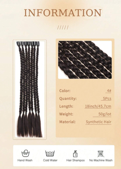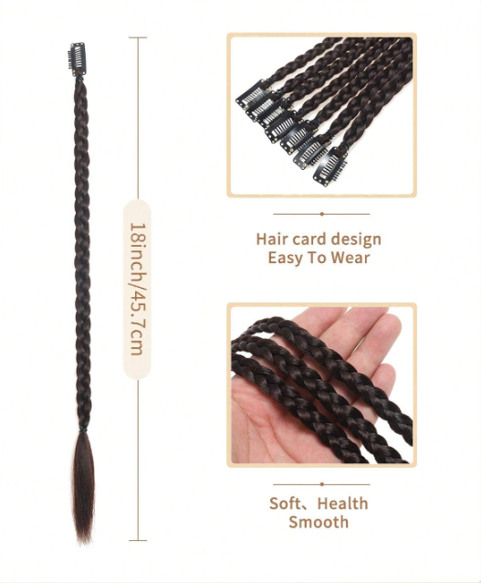 5 Pieces Black Grey Jacque Clip Braid Chemical Fiber Hair Extensions Suitable For Women Holidays And Daily Wear Clip Hair Braid Hair Extensions Accessories High Temperature Silk Chemical Fiber Extension For Christmas New Year Carnival Music Festival Use
