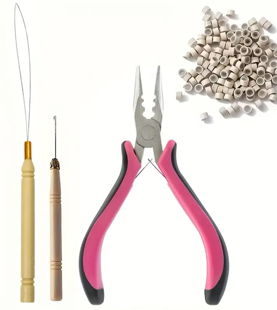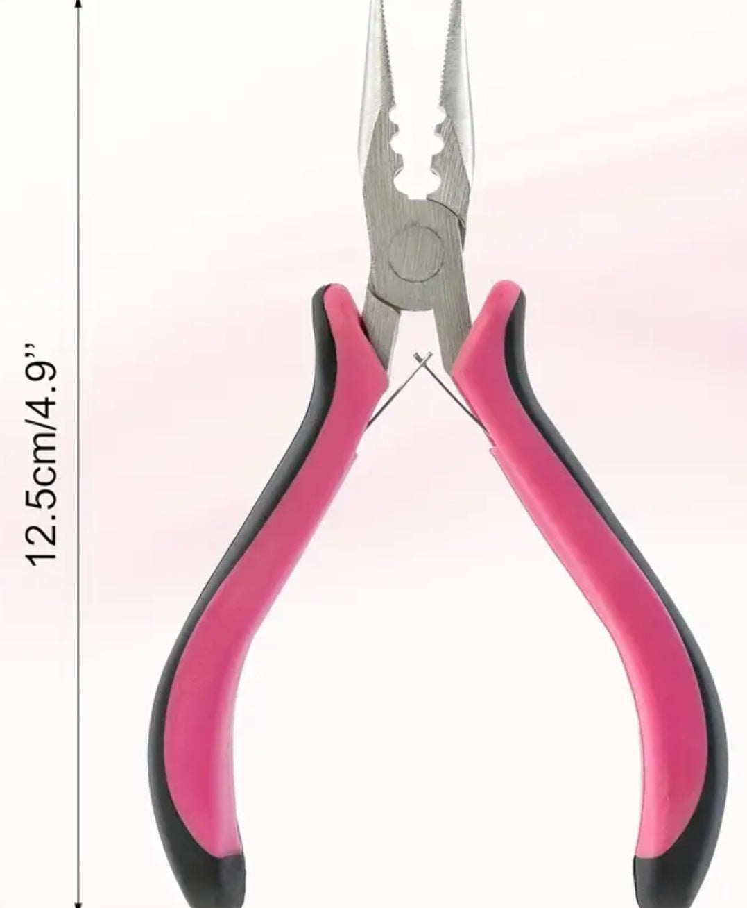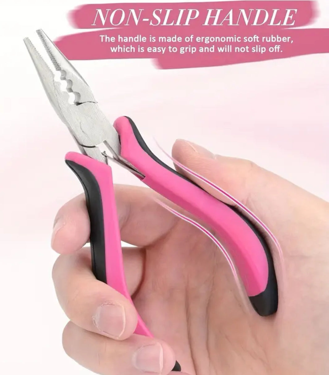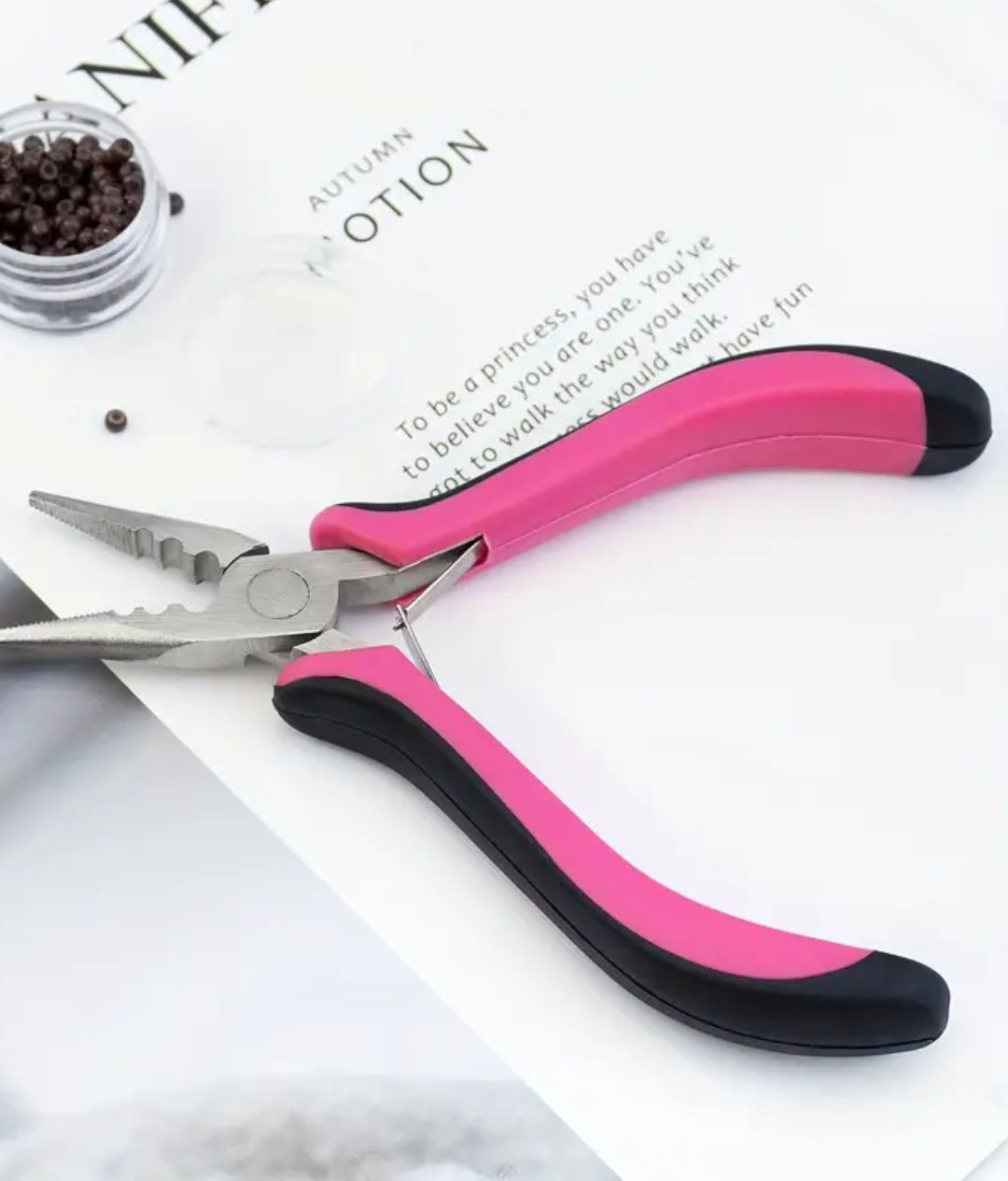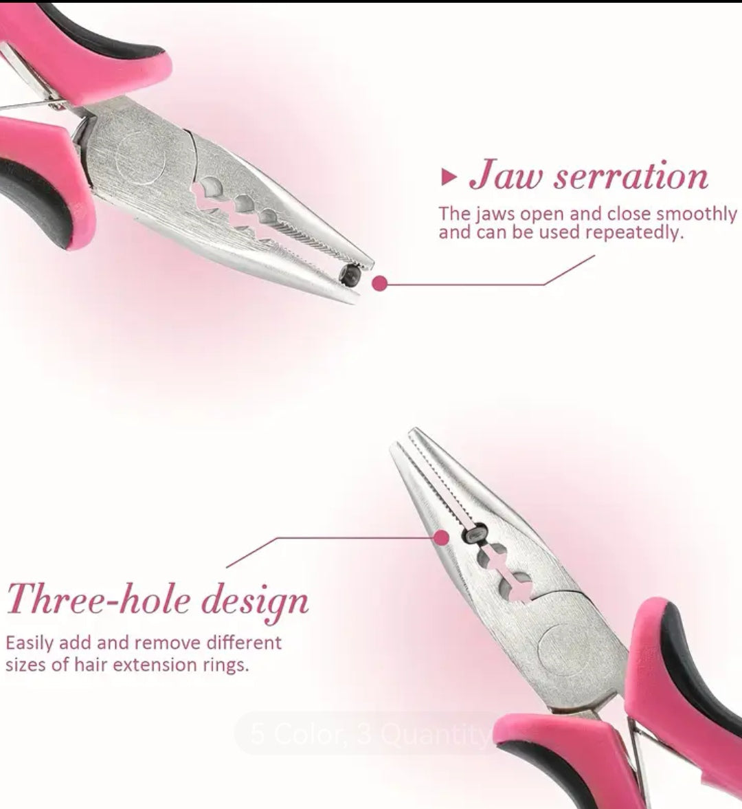 3-Hole Micro Ring Hook Needle Hair Extension Pliers with Looper, Pulling Loop Beads & Styling Feather - Pink Ergonomic Handles, 5 Color Options for DIY Home Use, Professional Styling Tools for Men & Women, Hair Tools, Bead Threading Tool, Stylish Hair Tool, Looping Mechanism, Durable Construction, Salon Professionals.