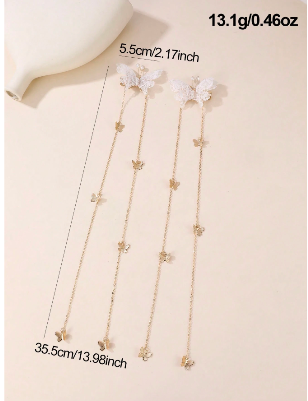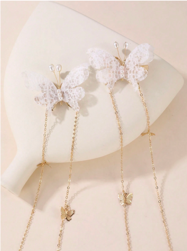 2pcs Women Minimalist White Bow Knot, Faux Pearl Tassel Hair Clips, Elegant Daily Wear In Spring & Summer, School Stuff, College, Faux Pearl Hair Accessories