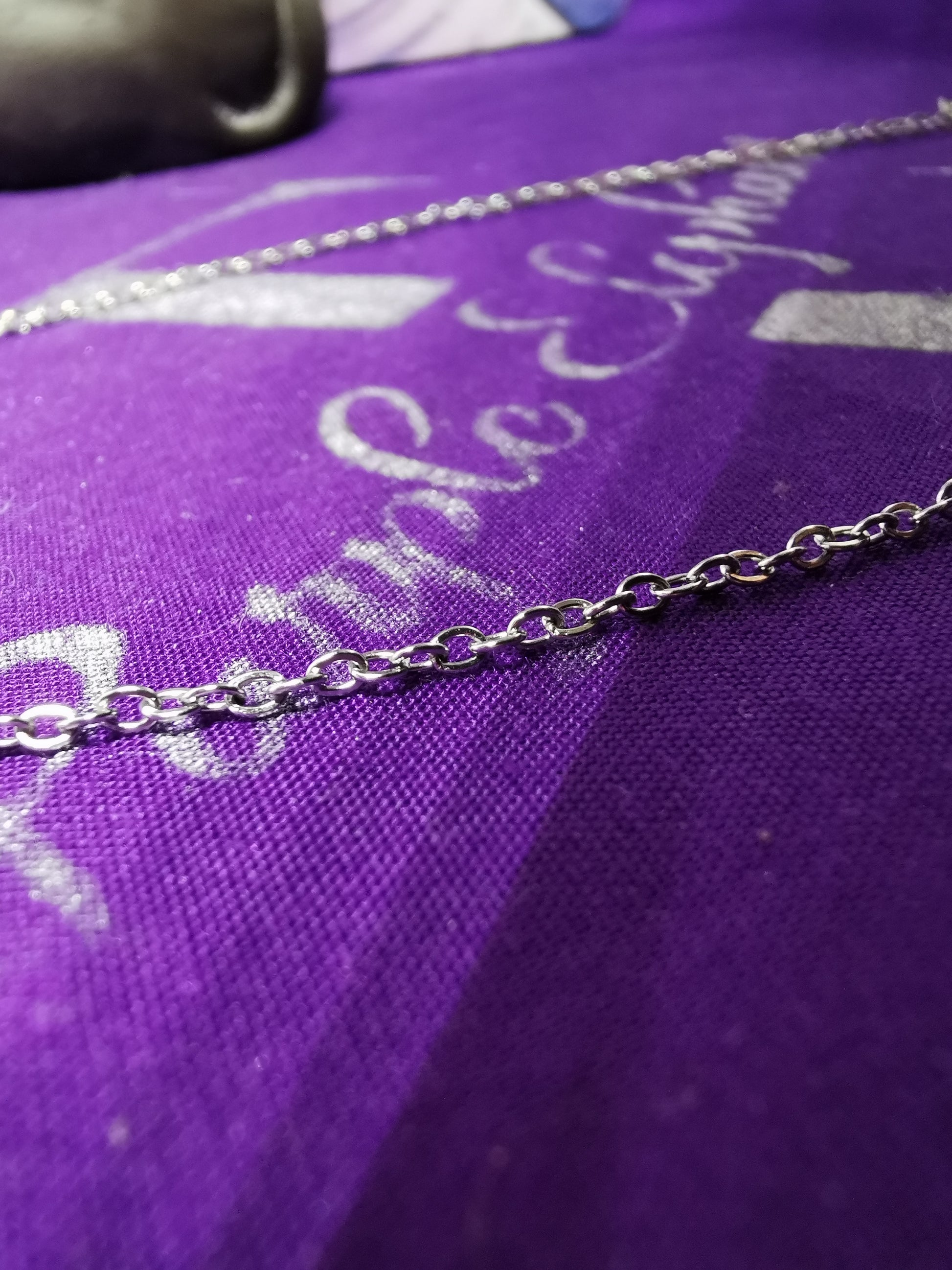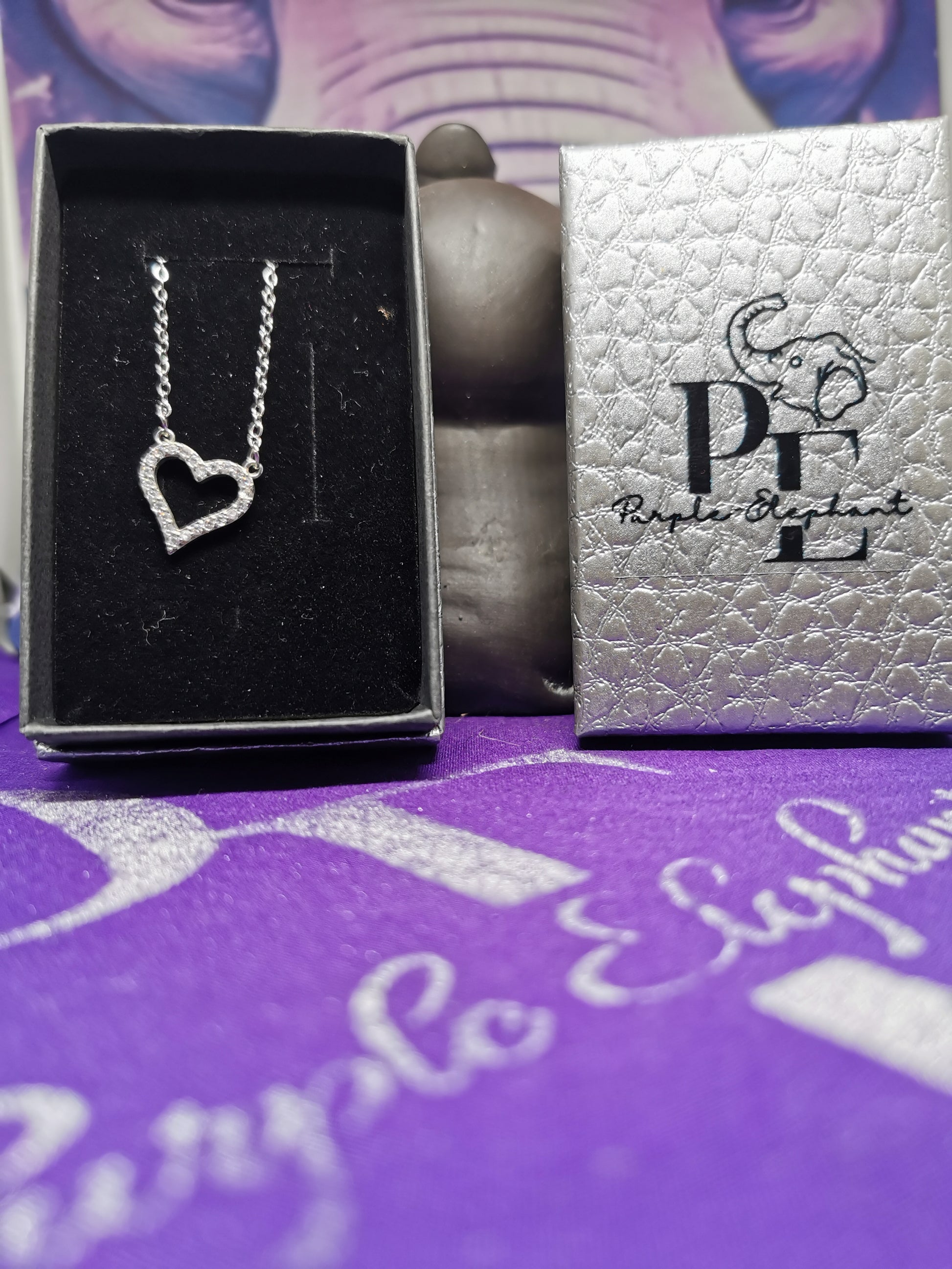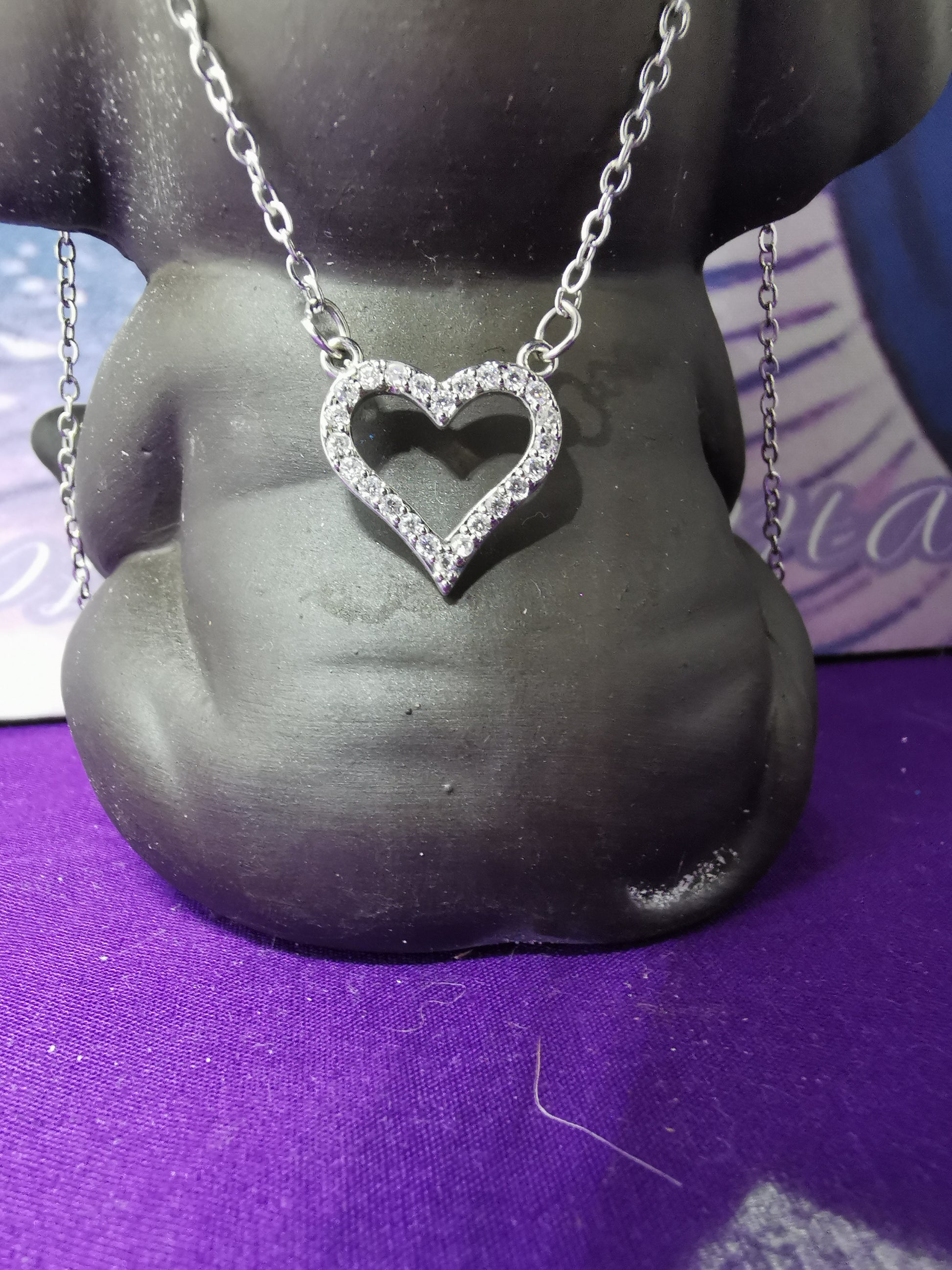 22cm Ladies Stainless Steel Chain - 1mm, Heart diamante, 1.5cm.
