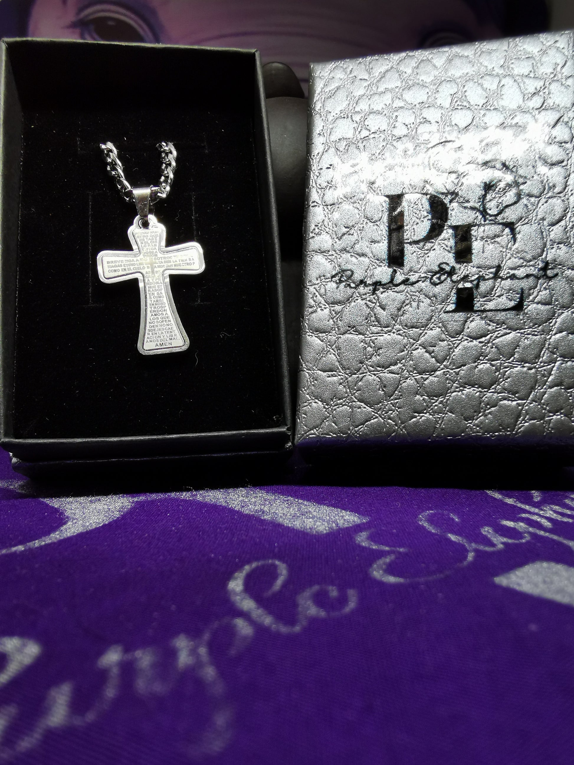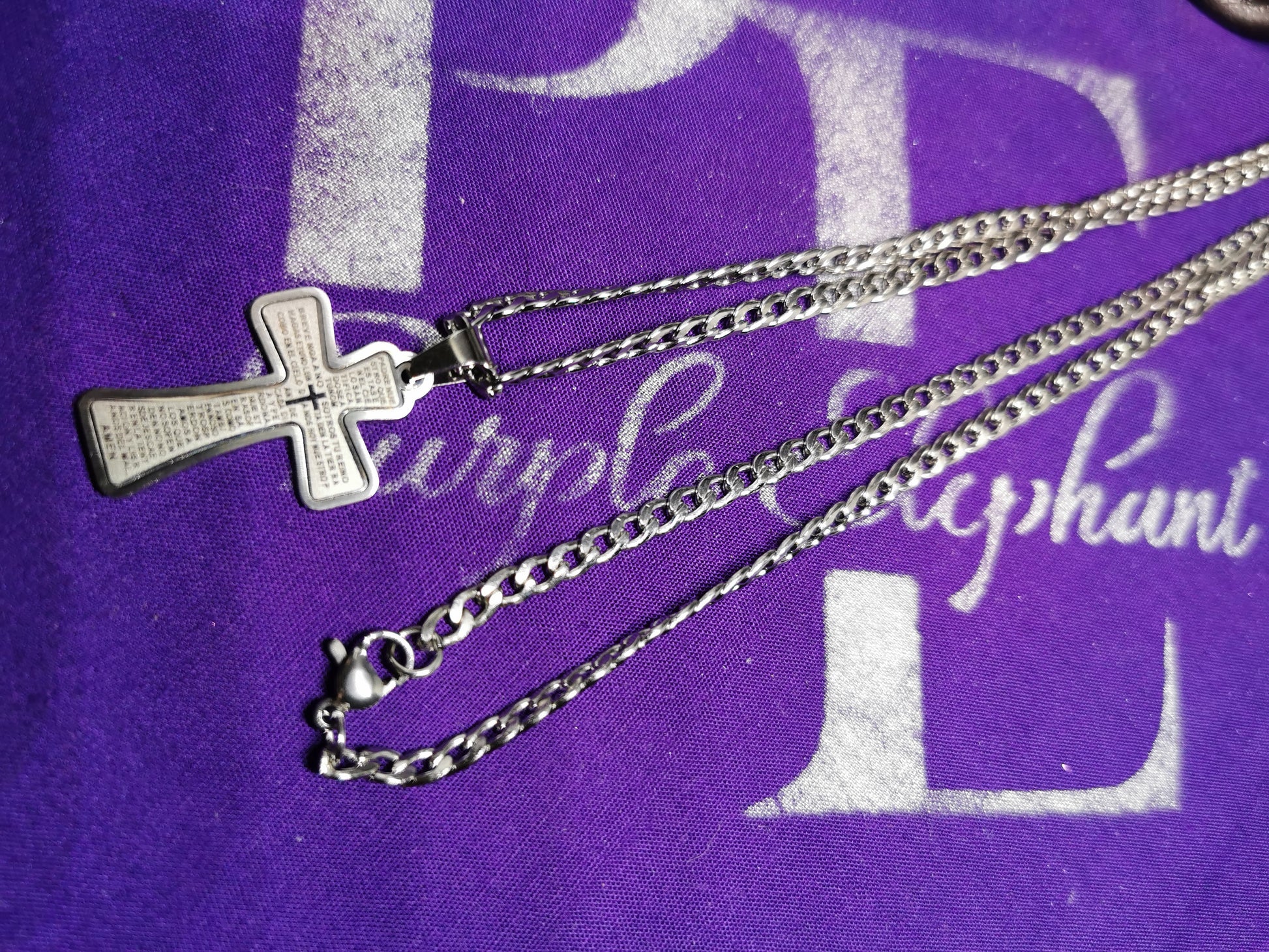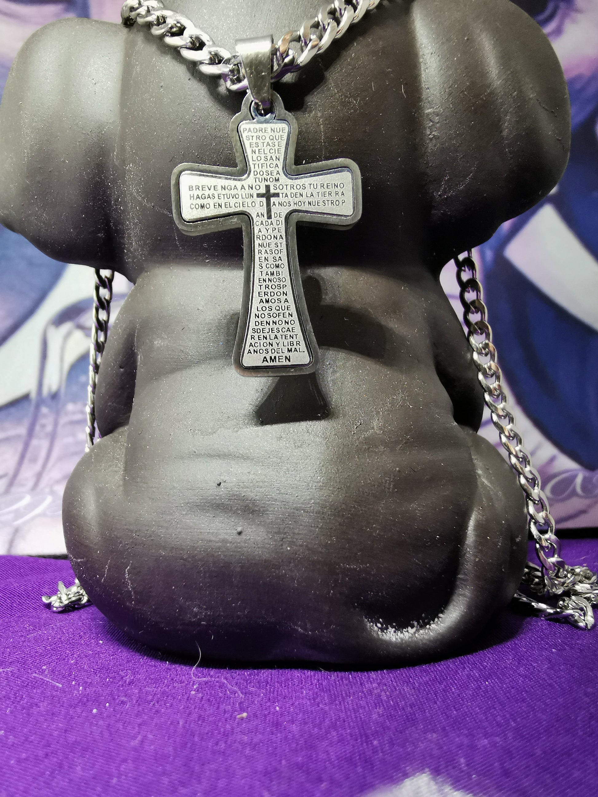 30cm Mens Stainless Steel Chain - 4mm Cross pendant 3.5cm (Spanish Padre Nuestro) (Our Father, who art in heaven).