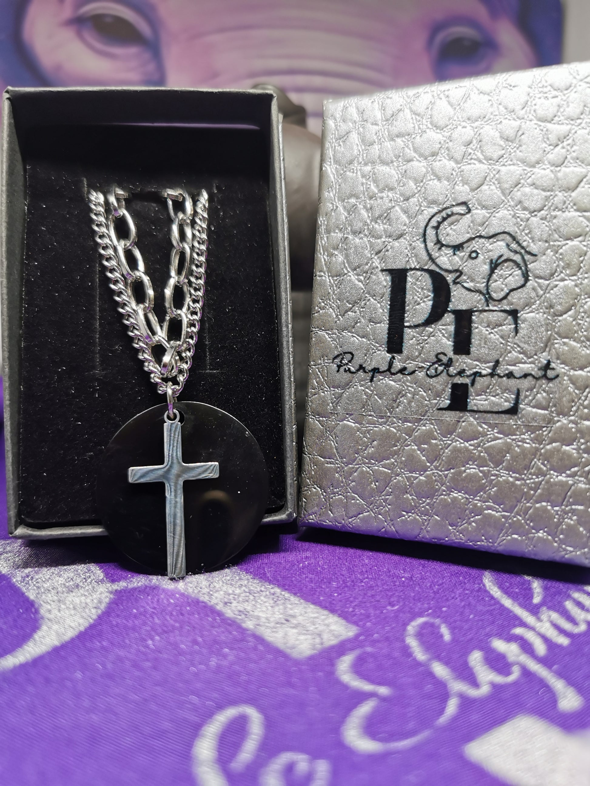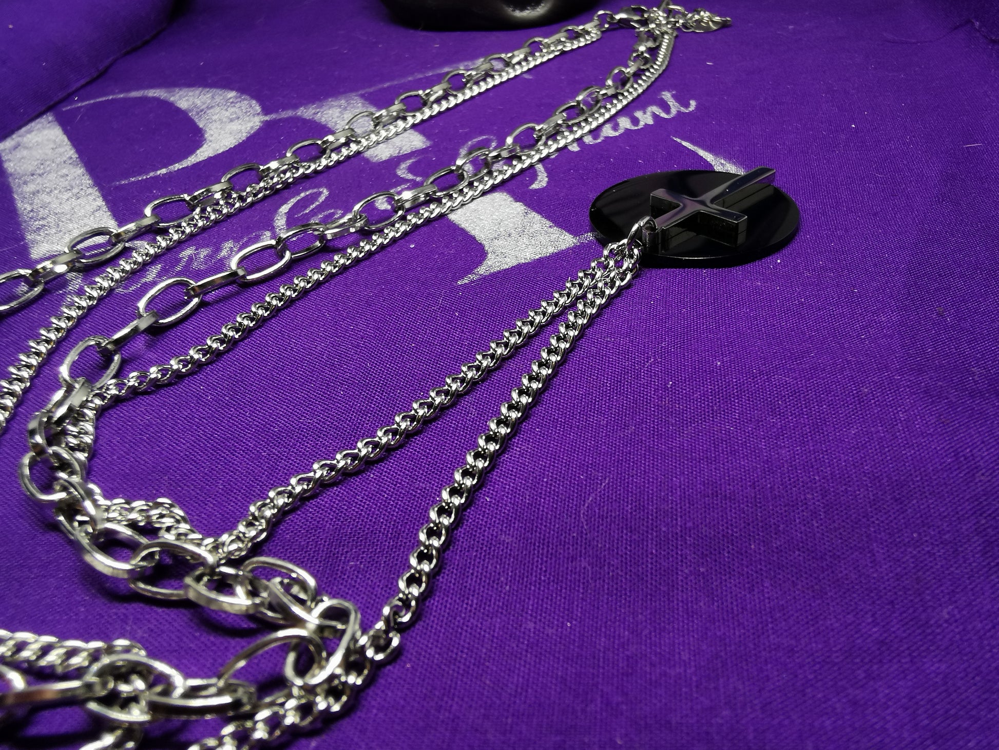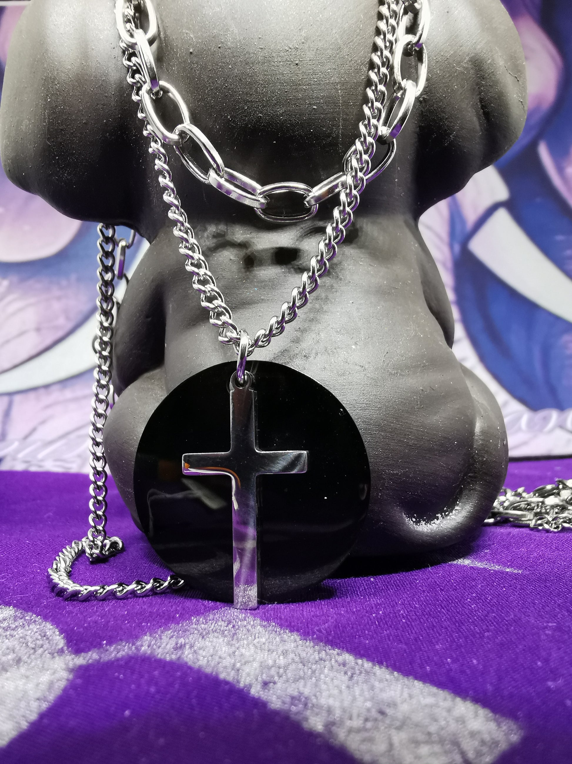 2 in 1 Stainless Steel Chain, Chain 1 25cm, 0.7mm , Chain 2 30cm 2mm, Black pendant 3cm, Cross.