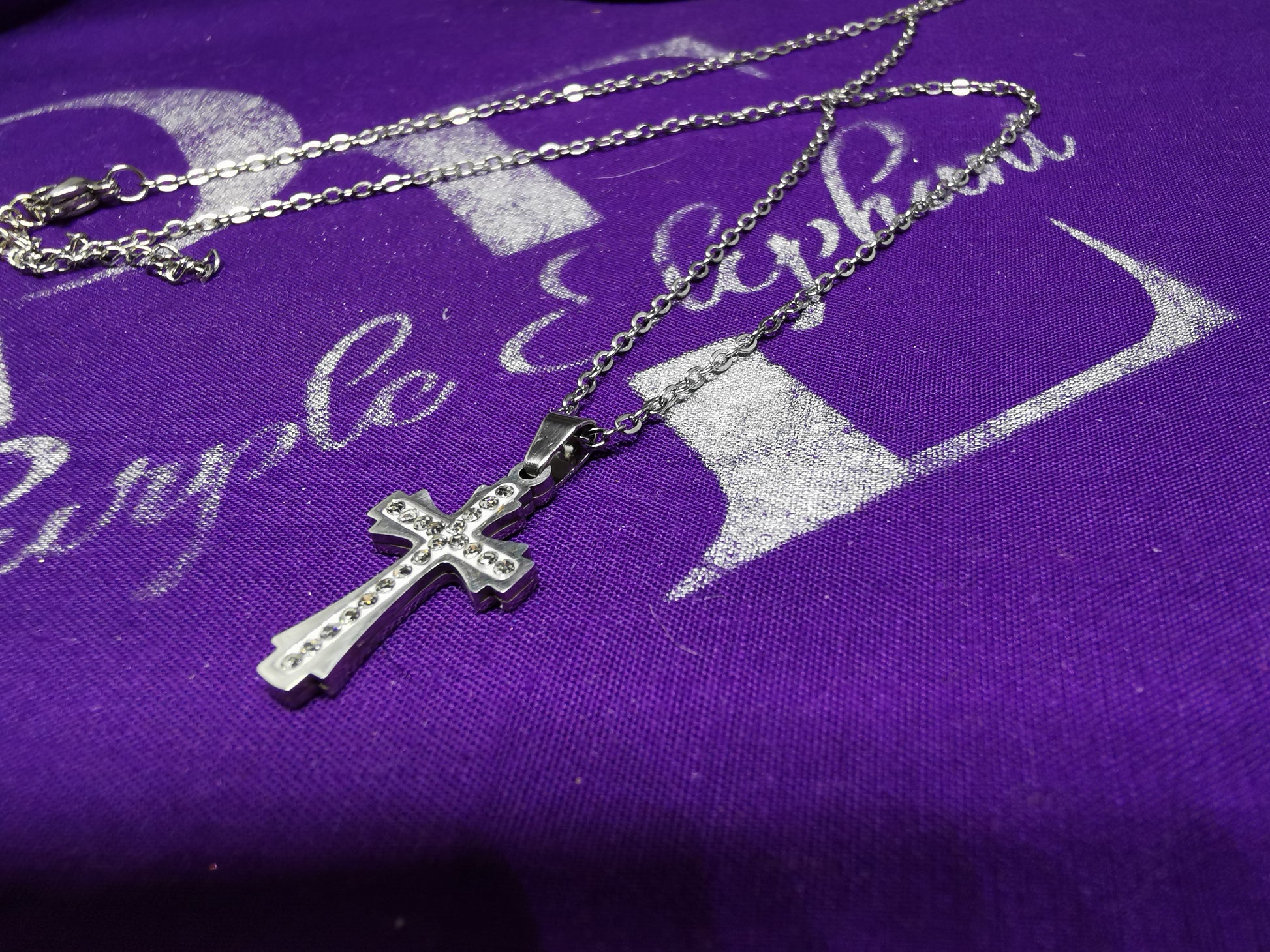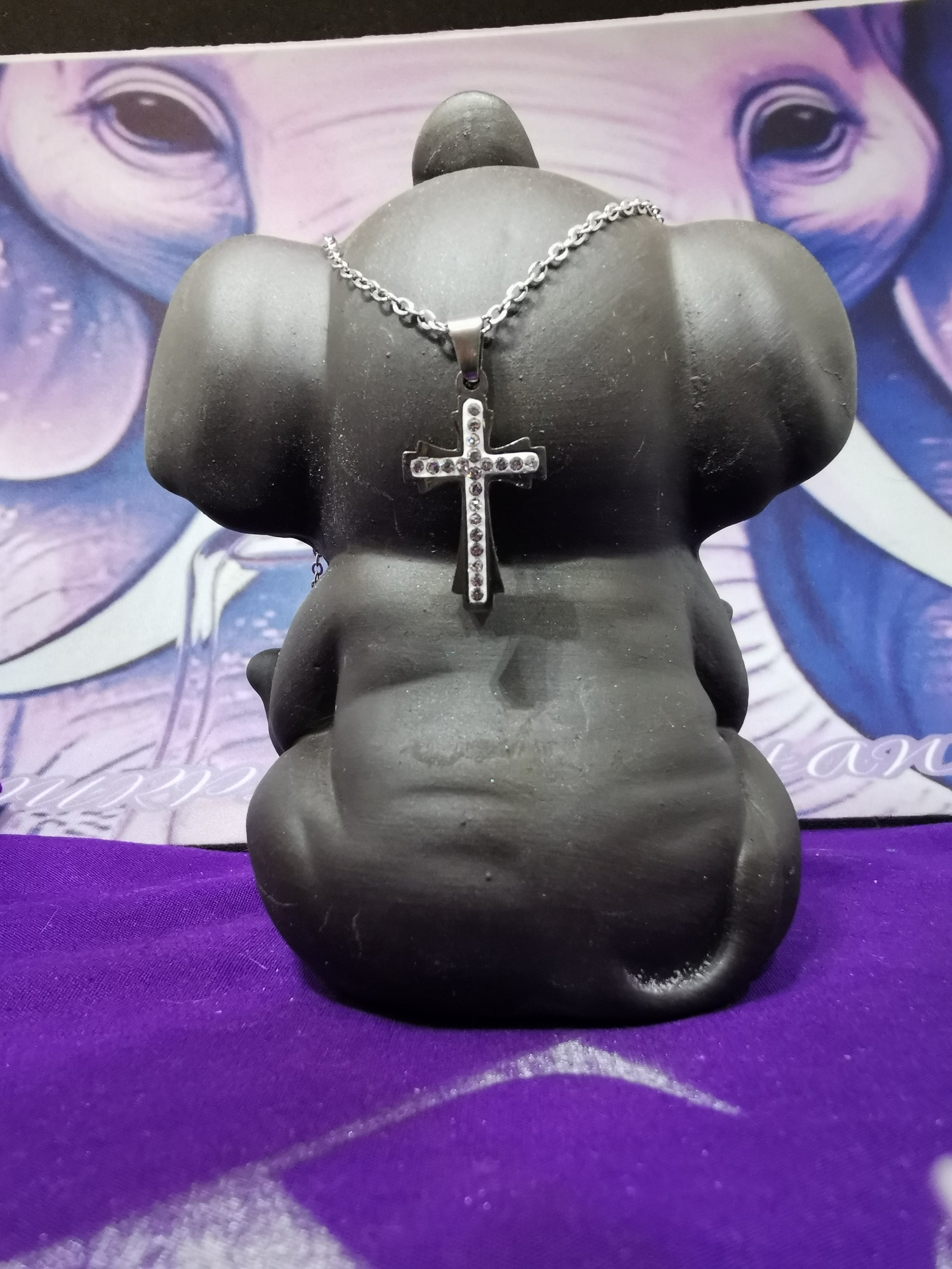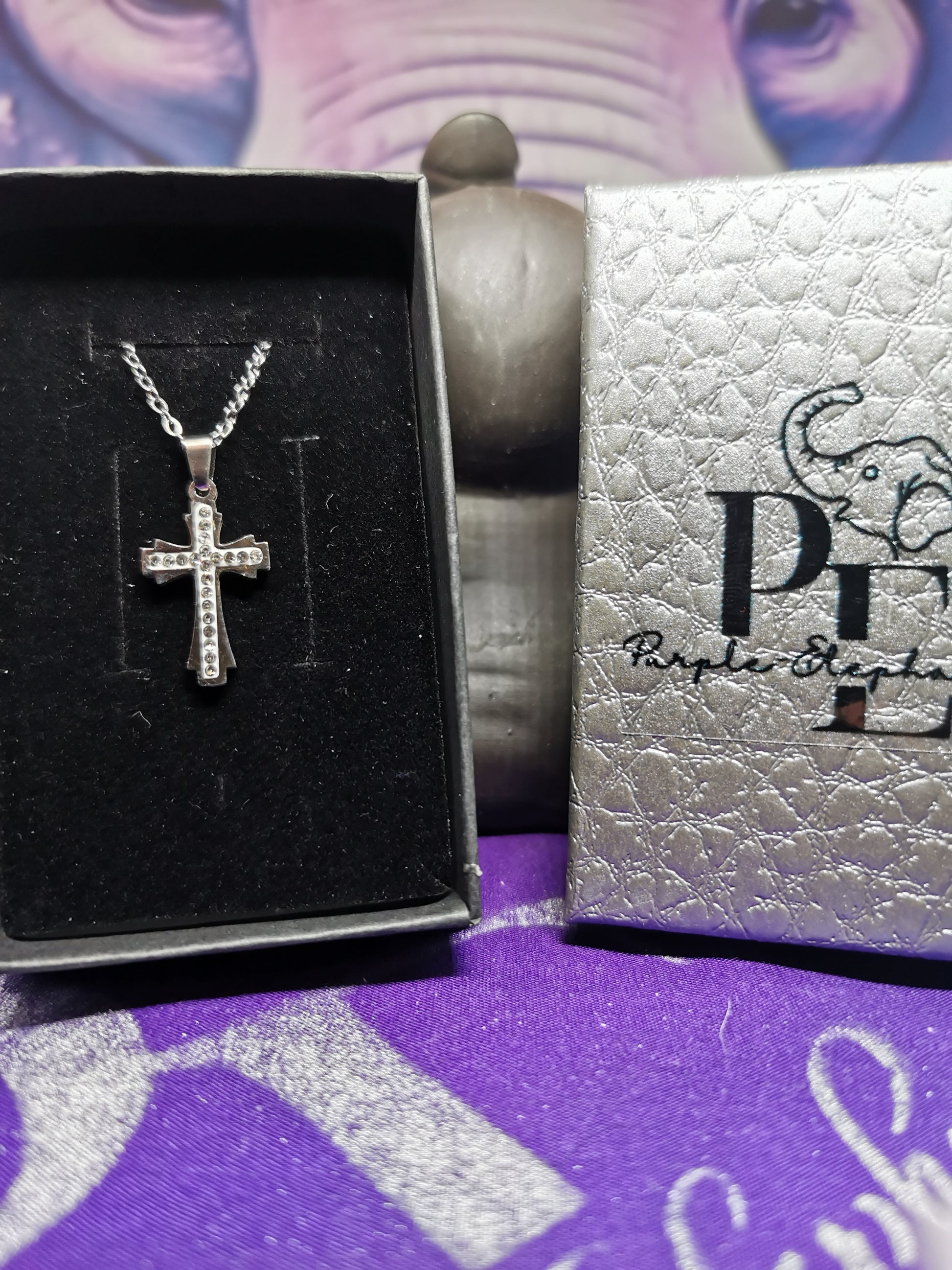 22.9cm Ladies Stainless Steel Chain 1mm -Cross Pendant white with diamante detail 2.7mm.